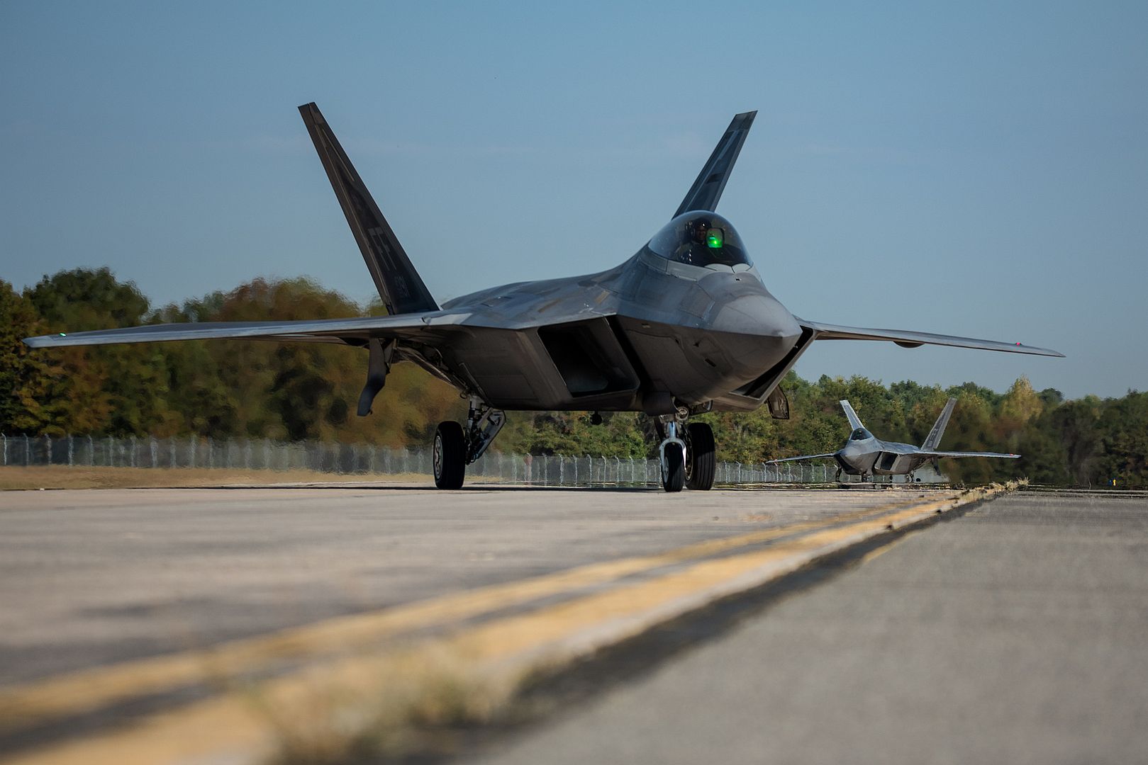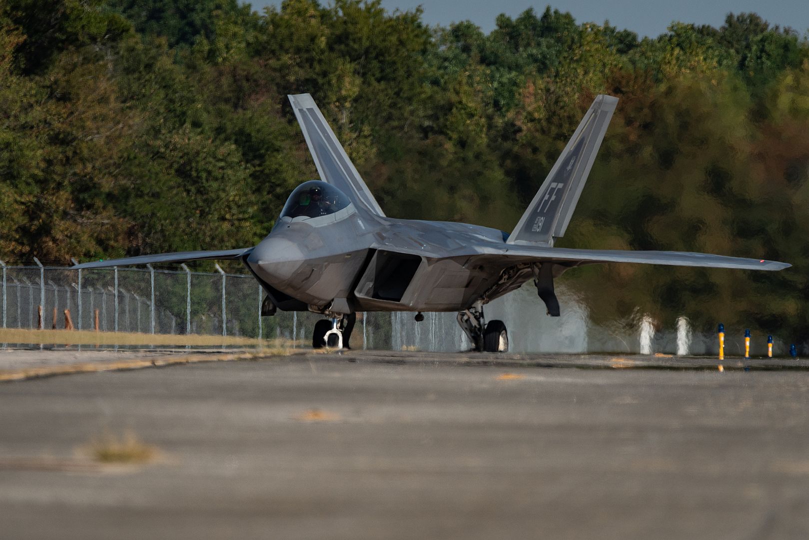 Main AdminTwo U.S. Air Force F-22 Raptors land at Robins Air Force Base, Ga. for the Thunder over Georgia Air Show, Sep 26, 2019. Performing on behalf of Air Combat Command, the 13-member team travels to 25 air shows a season to showcase the performance and capabilities of the world's premier 5th-generation fighter. (U.S. Air Force photo by 2nd Lt. Sam Eckholm)