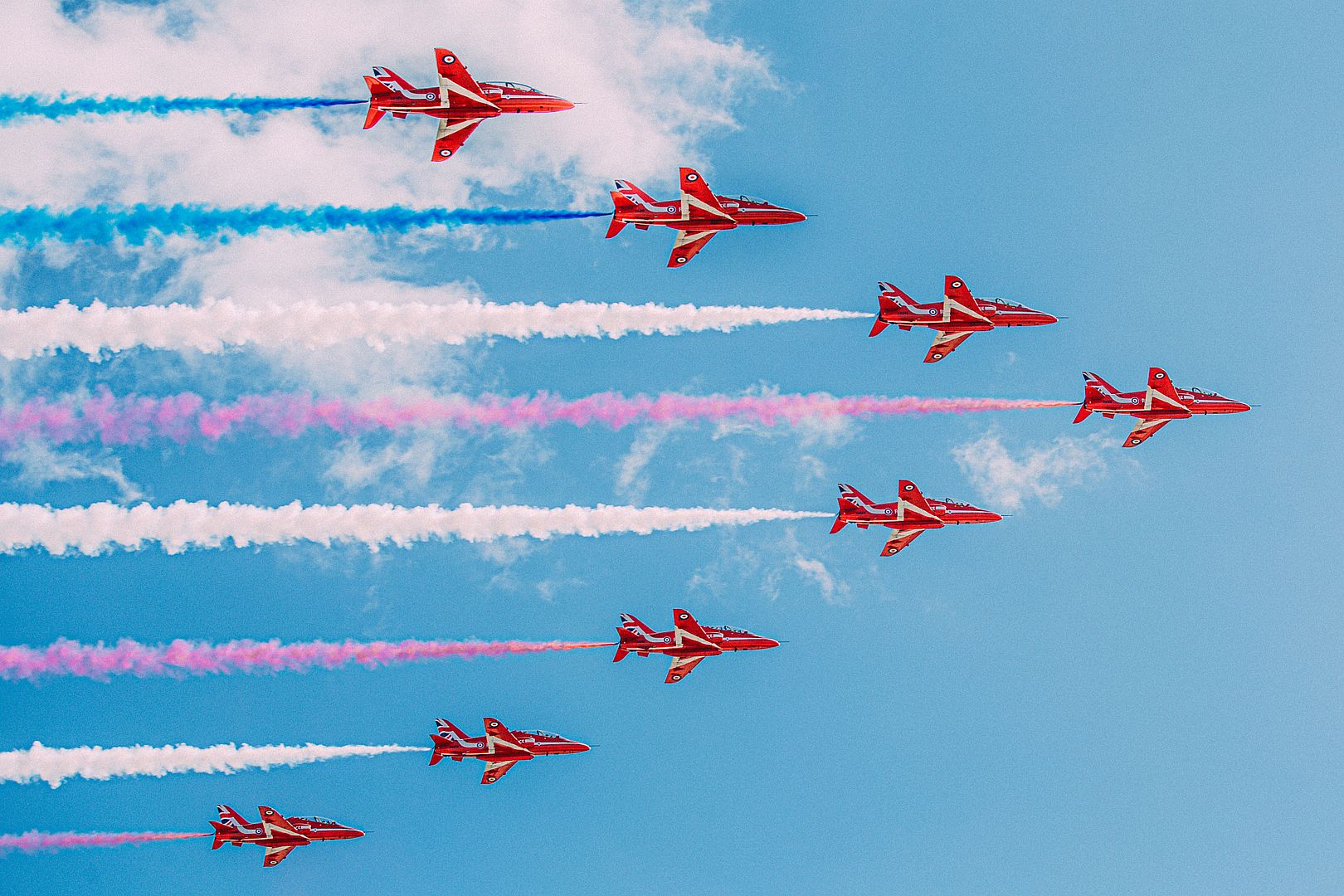 The Royal Air Force?s Red Arrows display team flew over the ship as part of the event, which is one of the last on their North American tour over the last three months.