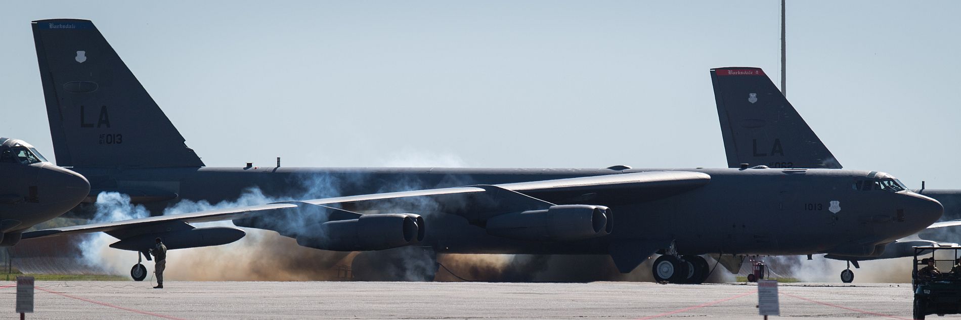Main AdminA B-52H Stratofortress bomber, assigned to the 2nd Bomb Wing from Barksdale Air Force Base, Louisiana, deploys a parachute to aid in slowing down the aircraft during Bomber Task Force Europe 20-1 while deployed to RAF Fairford, United Kingdom, Nov. 4, 2019. This BTF is the global employment of U.S. strategic bombers, nuclear and conventional, providing strategic military advantage to achieve national and combatant commander objectives. (U.S. Navy photo by Mass Communication Specialist 2nd Class Eric Coffer)