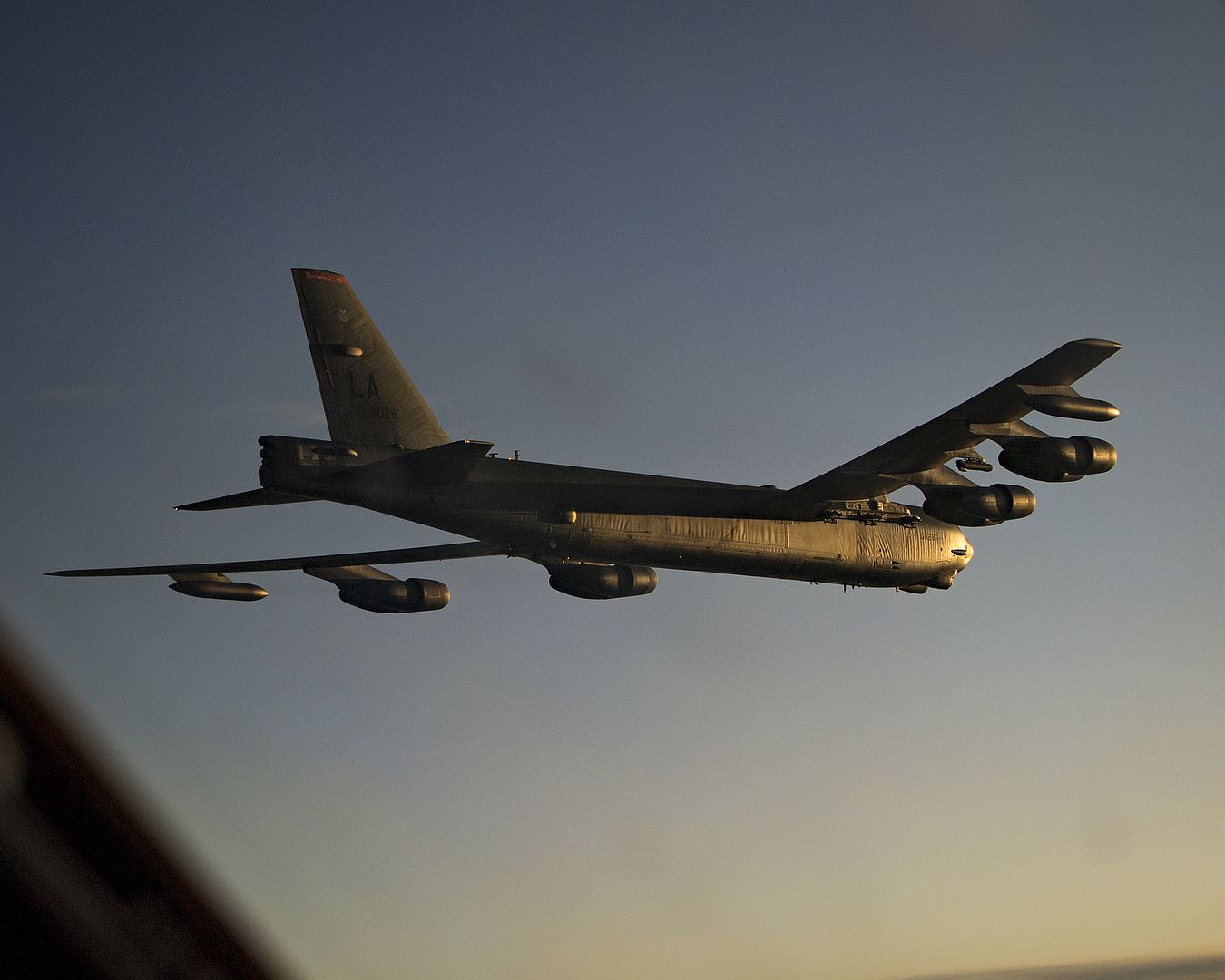 A U.S. Air Force B-52H Stratofortress assigned to the 96th Bomb Squadron flies in formation during Bomber Task Force Europe 20-1, Oct. 23, 2019, over the Baltic Sea. Strategic bombers contribute to stability in the European theater, as they are intended to deter conflict rather than instigate it, demonstrating the credibility of U.S. forces to address the current global security environment. (U.S. Air Force photo's by Airman 1st Class Duncan C. Bevan)