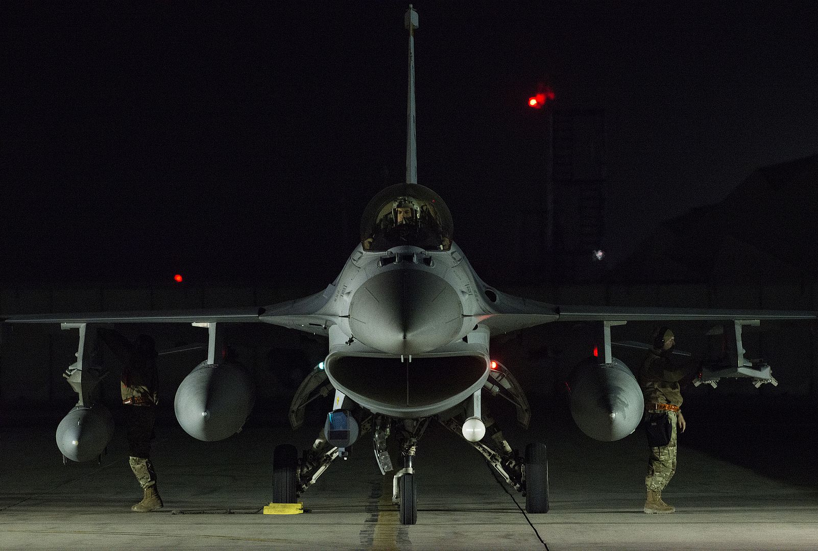 A U.S. Air Force F-16 Fighting Falcon from the 79th Fighter Squadron at Shaw Air Force Base, S.C., arrives at Bagram Airfield, Afghanistan, Oct. 26, 2019. While assigned to the 455th Air Expeditionary Wing at Bagram, the F-16s will help provide decisive airpower through the U.S. Central Command area of responsibility. The airpower the wing provides ensures NATO forces can focus on their mission to train, advise and assist. (U.S. Air Force photo by Staff Sgt. Matthew Lotz)