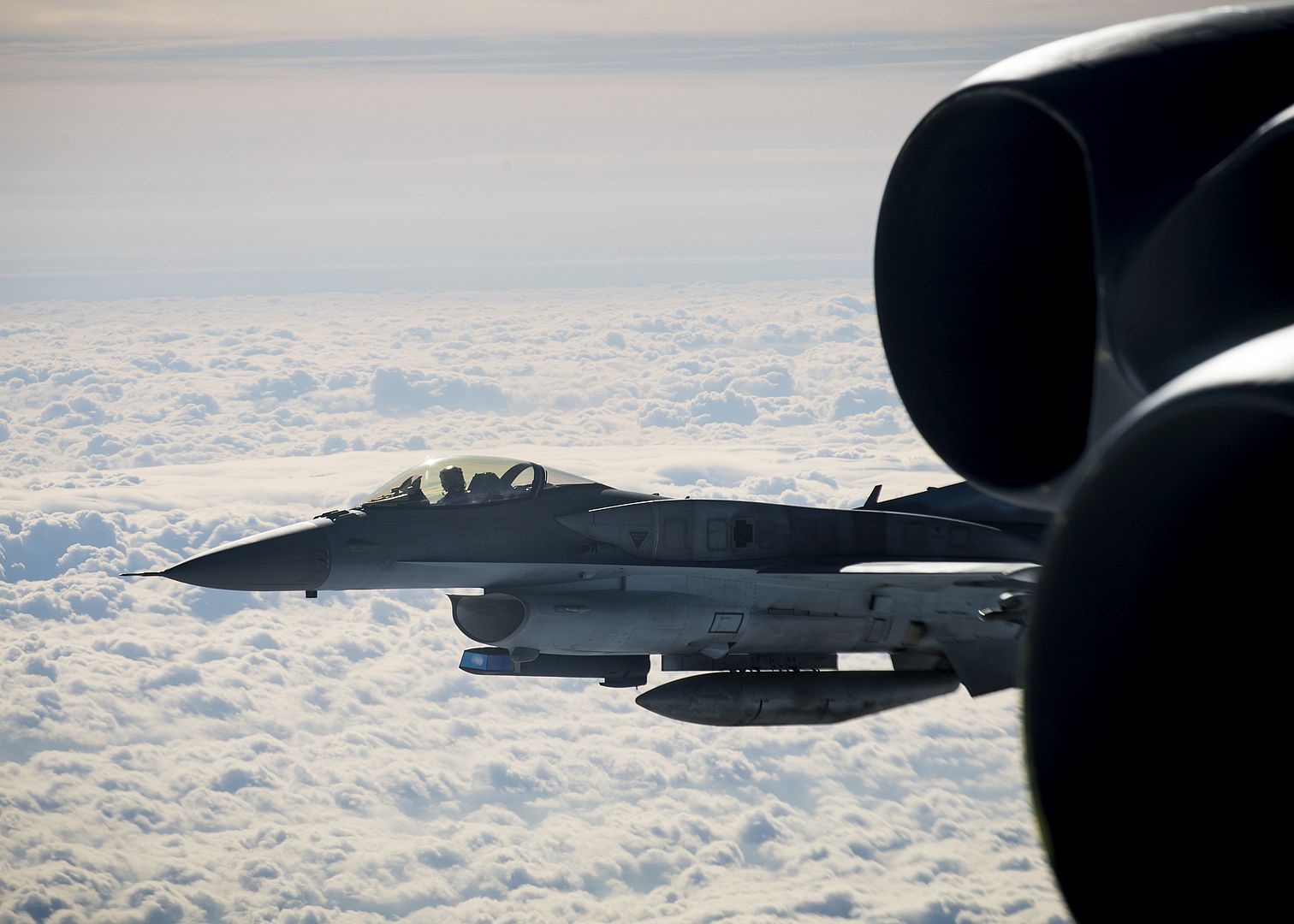 The RAF aircraft carried out a practice intercept, giving both the RAF and USAF aircrew the opportunity to exercise with each other.