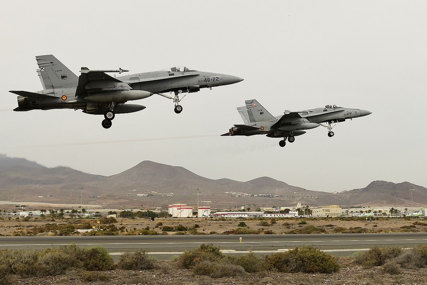 A Spanish air force F/A-18 Hornet returns from a training sortie in support of the air-to-air combat training exercise, OCEAN SKY 19, at Gando Air Base, Gran Canaria Island, Spain, Oct. 24, 2019. Exercises like OCEAN SKY remain a symbol of the shared commitment between Spain, the U.S. and NATO to maintaining the continued security of Europe. (U.S. Air Force photo/ Tech. Sgt. Matthew Plew)
