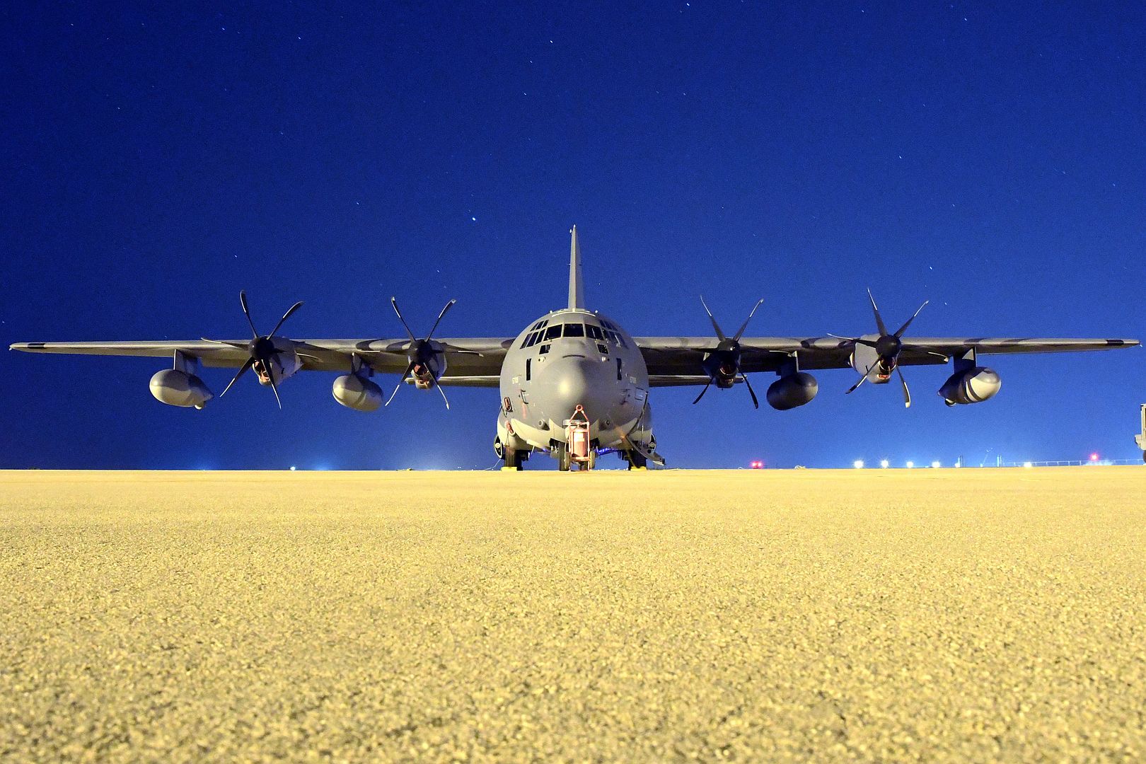 A U.S. Air Force HC-130J Combat King II sits on the flight line at Davis-Monthan Air Force Base, Arizona, Oct. 31, 2019. The HC-130J is the only dedicated fixed-wing Personnel Recovery platform in the Air Force inventory. Its mission is to rapidly deploy to execute combatant commander directed recovery operations to austere airfields and denied territory for expeditionary, all weather personnel recovery operations to include airdrop, airland, helicopter air-to-air refueling, and forward area ground refueling missions. (U.S. Air Force photo by Senior Airman Cheyenne A. Powers)