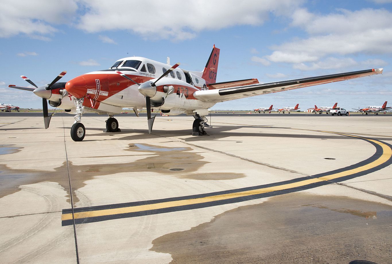 CORPUS CHRISTI, Texas (Oct. 25, 2019) A T-44C Pegasus aircraft assigned to Training Air Wing (TW) 4 sits on the flight line at Naval Air Station Corpus Christi. TW-4 conducts primary, intermediate, and advanced flight training for Navy, Marine Corps, and Coast Guard pilots. (U.S. Navy photo by Lt. Michelle Tucker/Released)