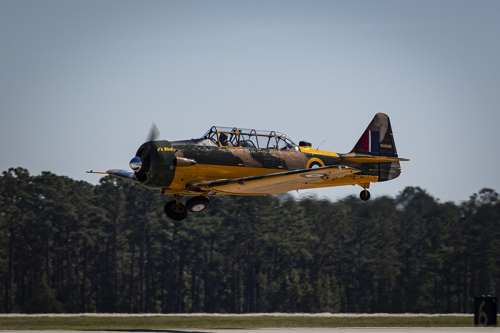 Main AdminJohn "Skipper" Hyle takes off for an aerial demonstration in his T-6 Texan during the 2019 Thunder Over South Georgia Open House Nov. 3, 2019, at Moody Air Force Base, Ga. Approximately 50,000 people attended the two-day Thunder Over South Georgia open house, which was headlined by the U.S. Navy Blue Angels demonstration team. (U.S. Air Force photo by Airman 1st Class Hayden Legg)