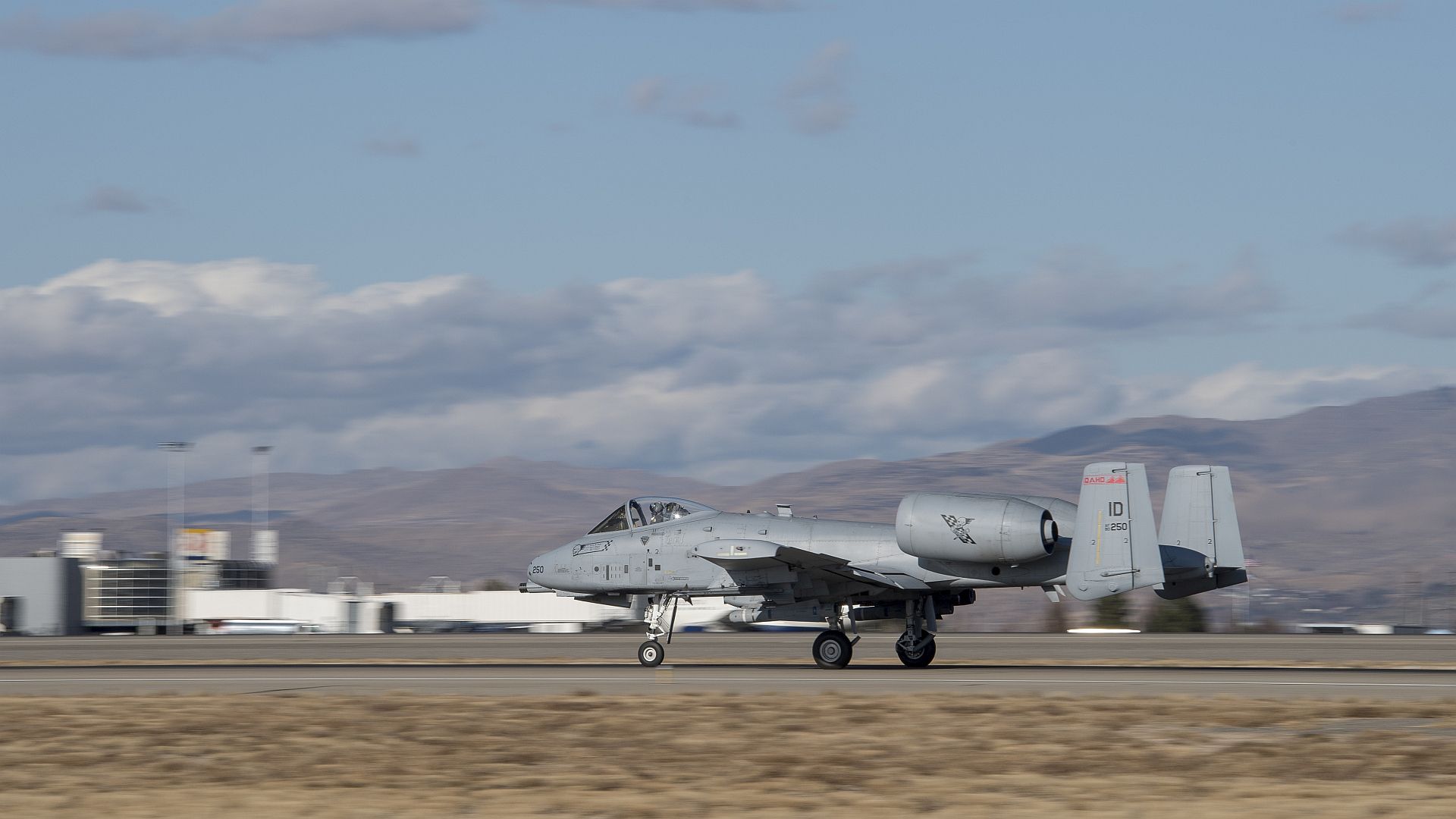 An A-10 Thunderbolt II, from the 124th Fighter Wing, takes off from Gowen Field, Boise, Idaho, for a combat search and rescue training sortie Nov. 19, 2019. The pilots from the 190th Fighter Squadron are training with MV-22 Osprey Marines from Marine Medium Tiltrotor Squadron 362 (VMM-362), south of Mountain Home, Idaho, at the Saylor Creek Range. (U.S. Air National Guard photo by Senior Master Sgt. Joshua C. Allmaras)