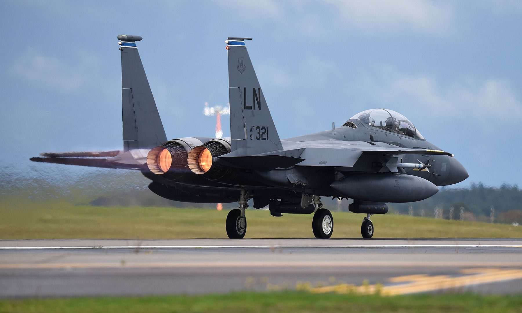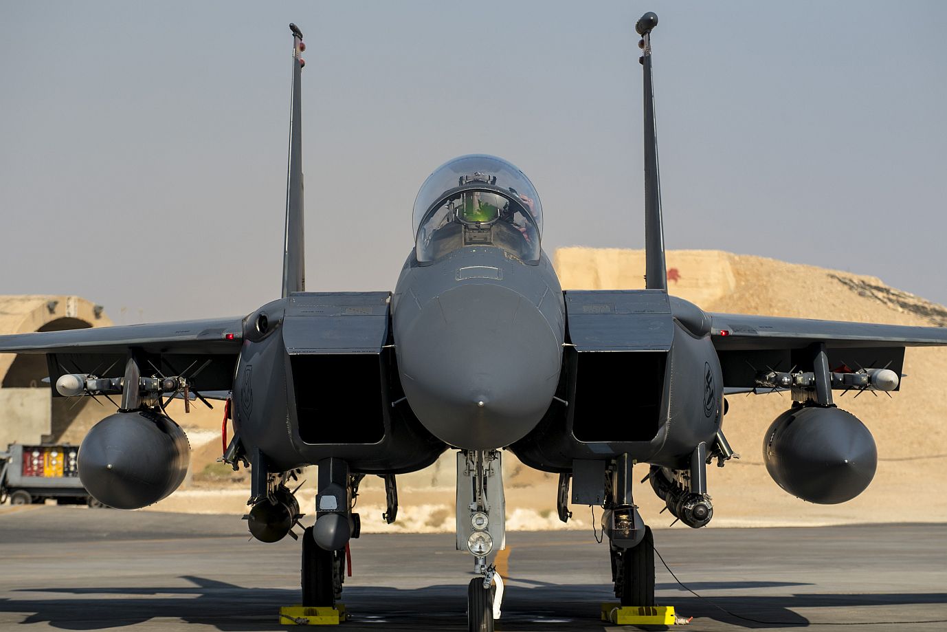 Aircrew of the 332d Air Expeditionary Wing prepare to launch an F-15E Strike Eagle November 12, 2019 at an undisclosed location in Southwest Asia. The F-15E is an extremely maneuverable tactical fighter designed to allow the Air Force to establish air superiority over the battlefield. (U.S. Air Force photo by Senior Master Sgt. Ralph Branson)