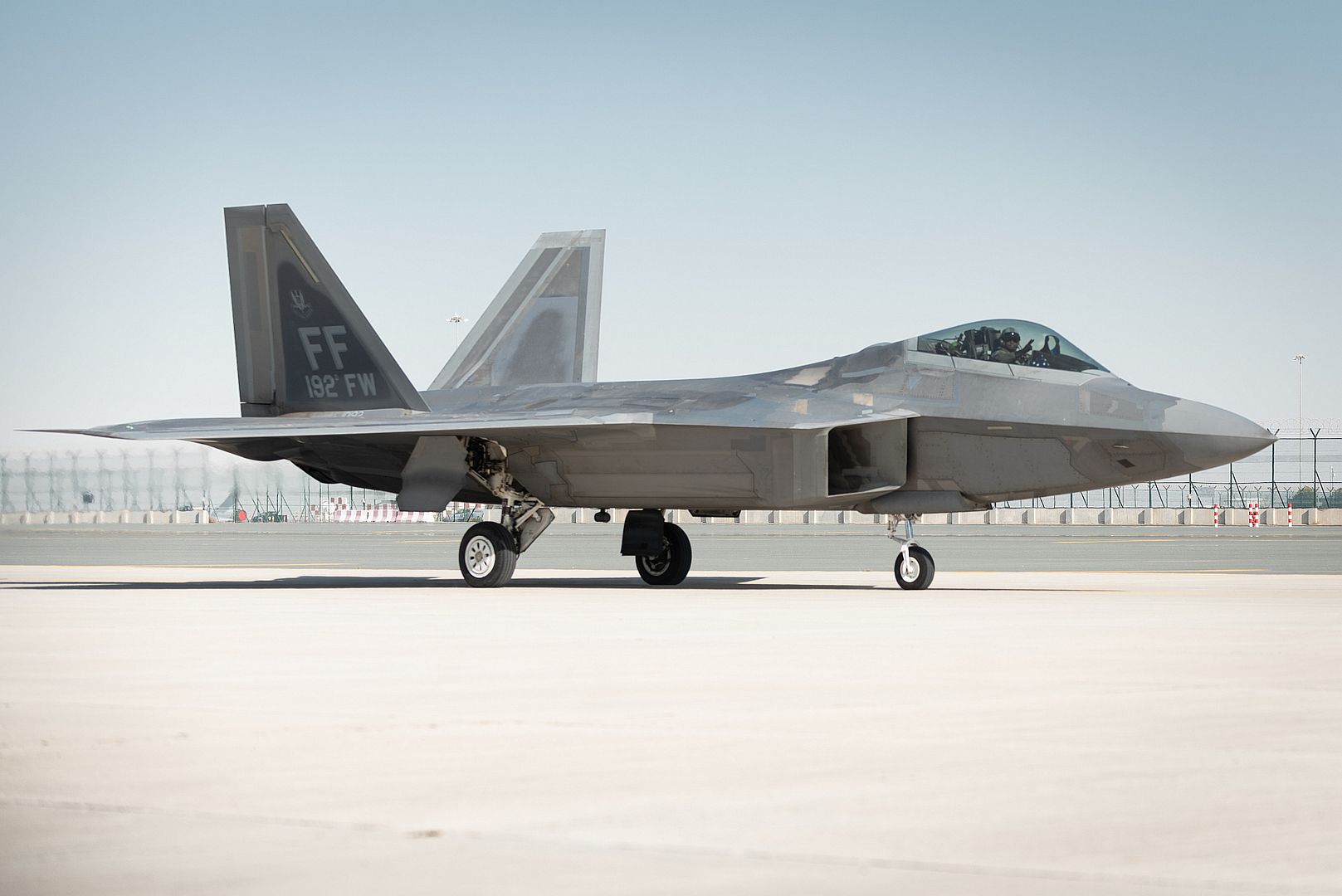 A U.S. Navy EA-18G Growler rests on the flightline at the Dubai Airshow, United Arab Emirates, Nov. 17, 2019. Approximately 300 U.S. military personnel are participating in the DAS to showcase U.S. assets and capabilities, and strengthen relationships with our regional partners. (U.S. Air Force photo by Staff Sgt. Joseph Pick)