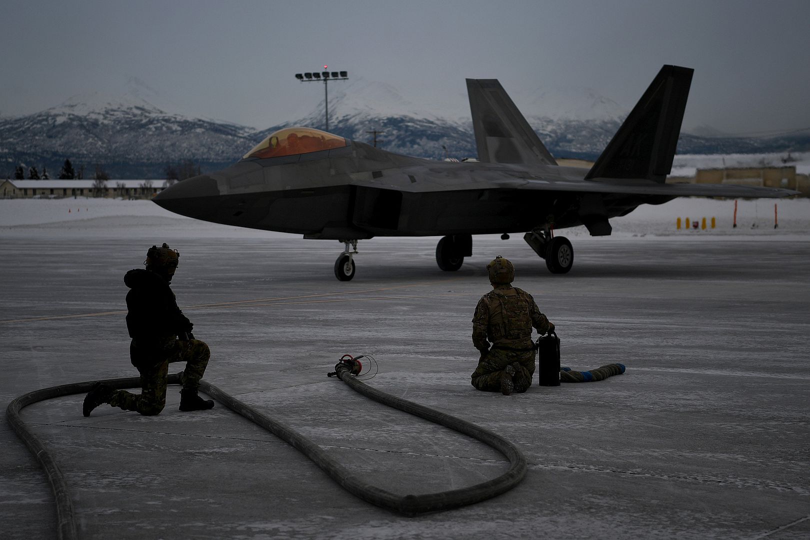 Main AdminA Special Tactics operator taxis an F-22 Raptor with the 3rd Wing into a simulated extreme cold weather environment Forward Area Refueling Point during Emerald Warrior at Joint Base Elmendorf-Richardson, Alaska, Jan. 30, 2020. Emerald Warrior 20-1 provides annual, realistic pre-deployment training encompassing multiple joint operating areas to prepare special operations forces, conventional force enablers, partner nations, and interagency elements to integrate with and execute full spectrum special operations in an arctic climate, sharpening U.S. forces? abilities to operate around the globe. (U.S. Air Force photo's by Staff Sgt. Ridge Shan)