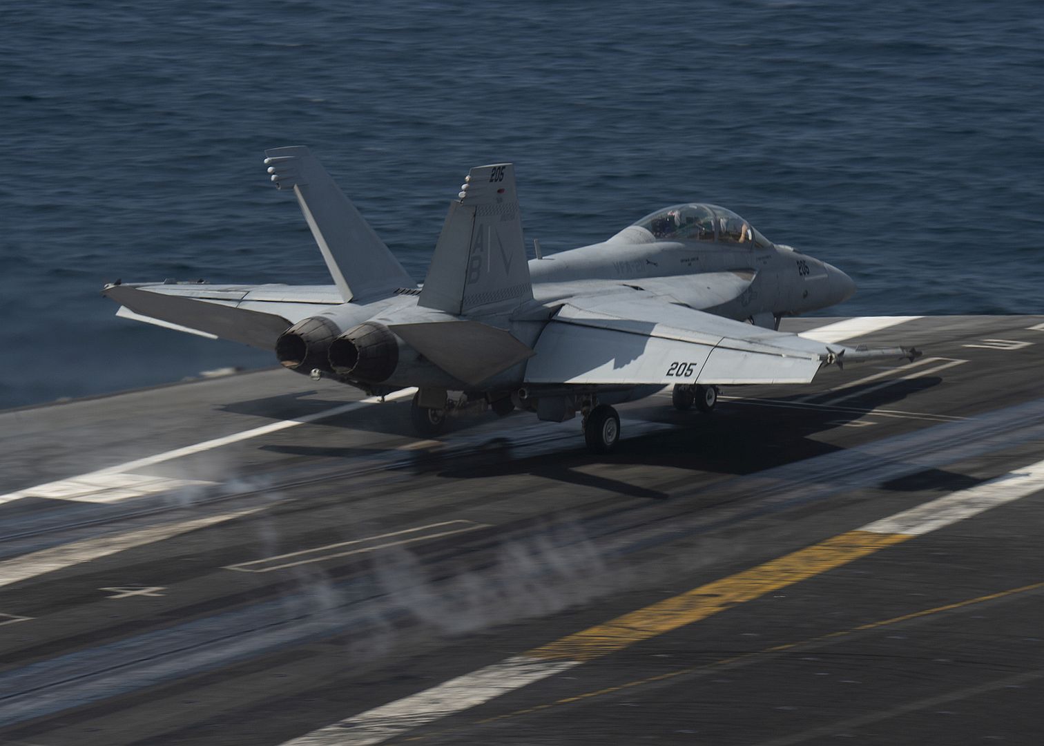 ARABIAN SEA (Feb. 7, 2020) An F/A-18F Super Hornet, attached to the ?Red Rippers? of Strike Fighter Squadron (VFA) 11, approaches the flight deck of the aircraft carrier USS Harry S. Truman (CVN 75) in the Arabian Sea Feb. 7, 2020. The Harry S. Truman Carrier Strike Group is deployed to the U.S. 5th Fleet area of operations in support of naval operations to ensure maritime stability and security in the Central Region, connecting the Mediterranean and the Pacific through the western Indian Ocean and three strategic choke points. (U.S. Navy photo's by Mass Communication Specialist 3rd Class Kaysee Lohmann)%2011,%20approaches%20the%20flight%20deck%20of%20the%20aircraft%20carrier%20USS%20Harry%20S.%20Truman%20(CVN%2075.jpg)