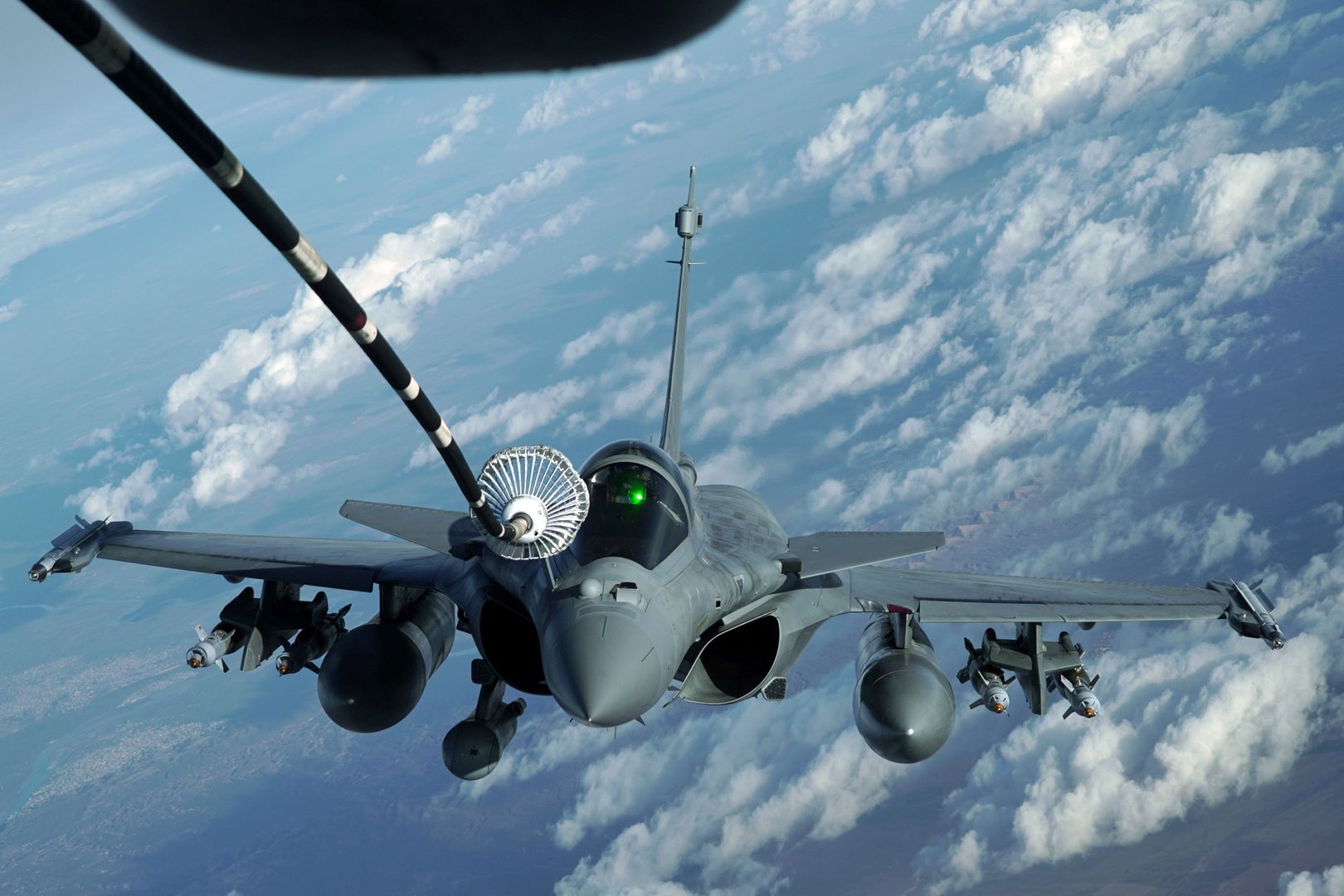 The 908th Expeditionary Air Refueling Wing conducts an aerial refuel with a French Rafale from the Arm?e de l'Air over Southwest Asia. The 908th is a KC-10 tanker squadron assigned to the 380th Air Expeditionary Wing, Al Dhafra Air Base, United Arab Emirates and enables coalition partners to execute their mission further developing relationships throughout the region. (U.S. Air Force photo by Tech. Sgt. Joshua Williams)