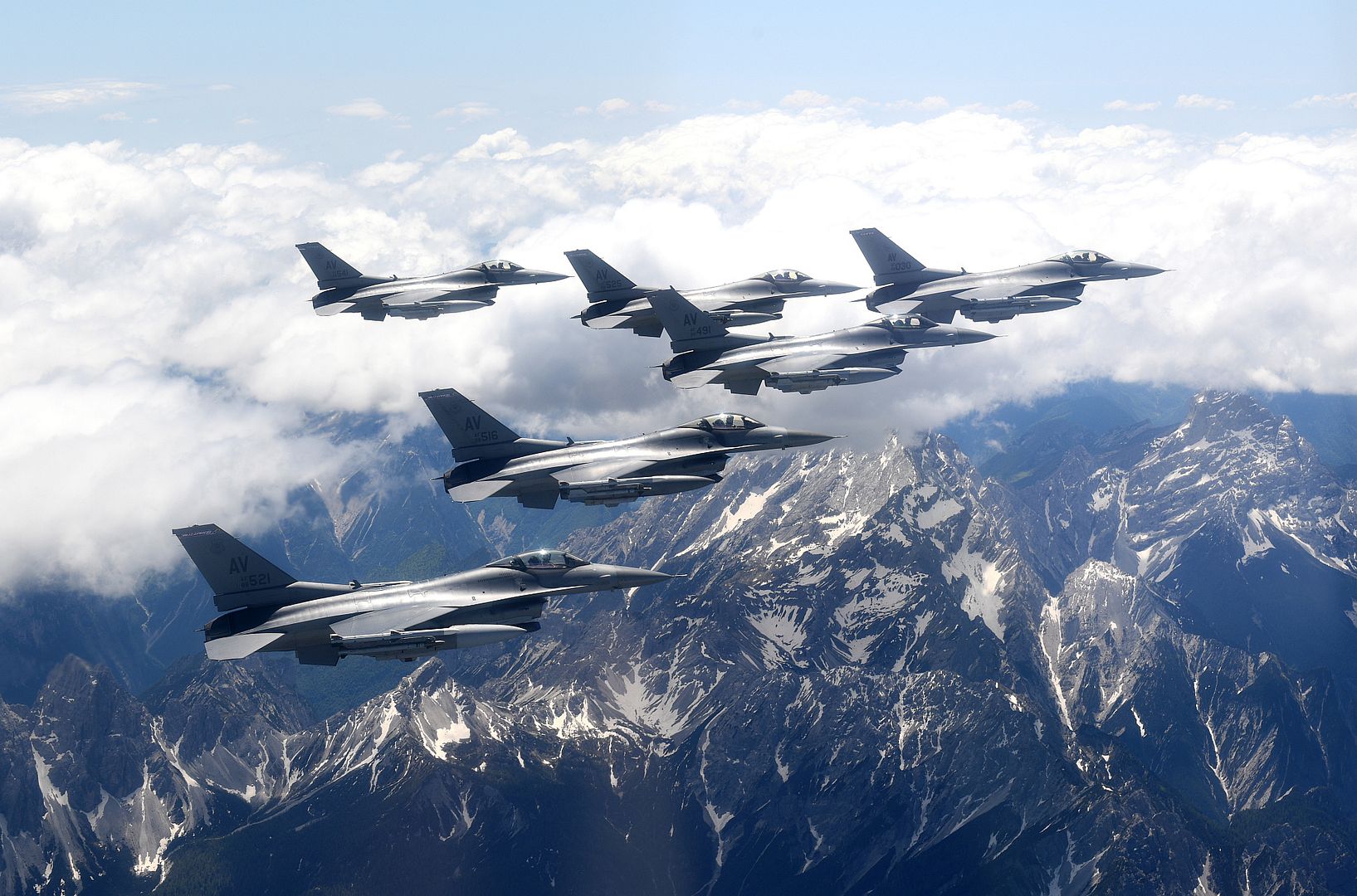 F-16 Fighting Falcons from the 31st Fighter Wing at Aviano Air Base, Italy, fly in formation, June 1, 2020. The 31st Fighter Wing is home to both the 510th Fighter Squadron and the 555th Fighter Squadron. (U.S. Air Force photo's by Senior Airman Caleb House)