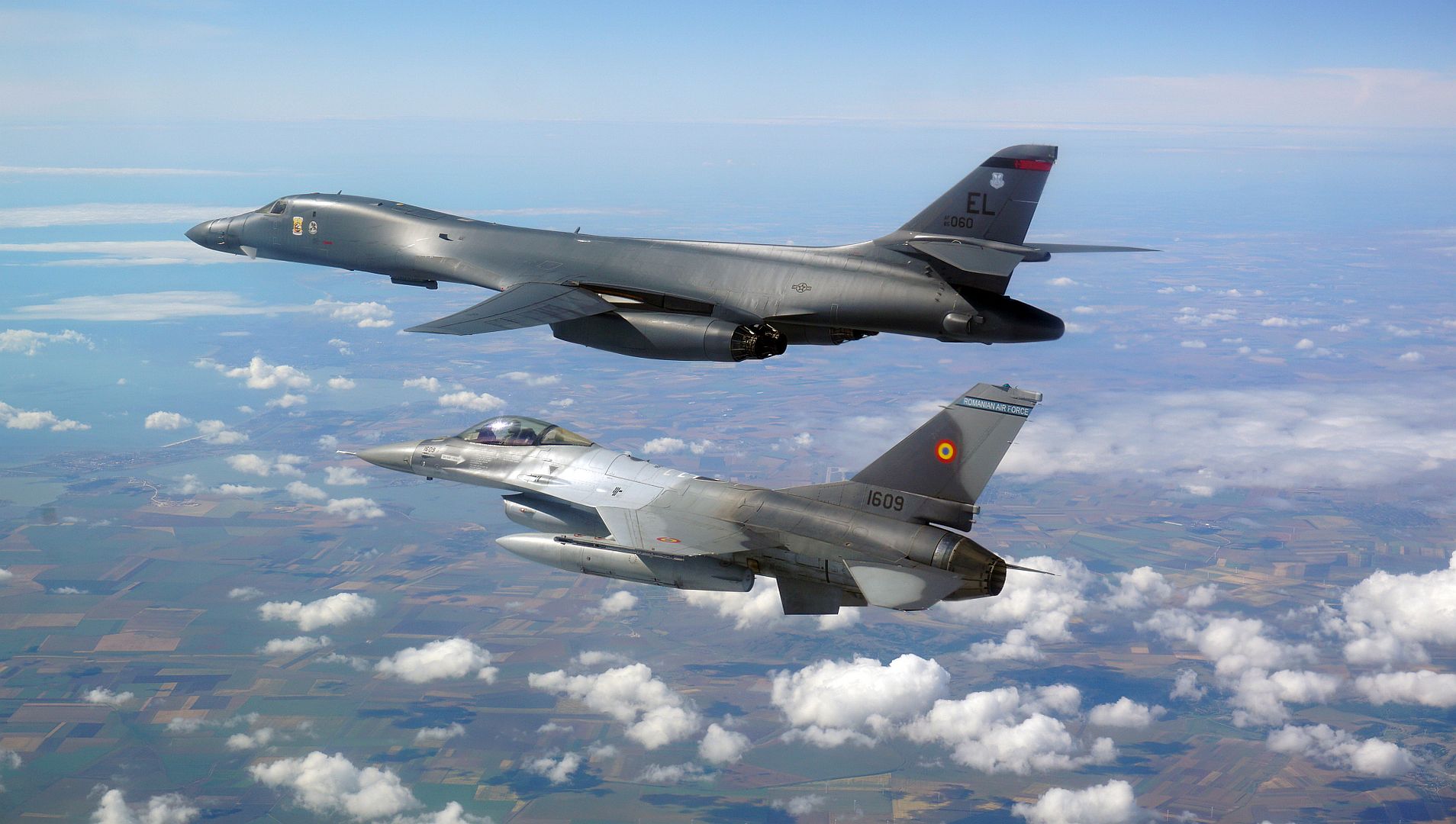 Main AdminA Romanian F-16 escorts a B1B Lancer during a training mission for Bomber Task Force Europe, May 29, 2020. Aircrews from the 28th Bomb Wing at Ellsworth Air Force Base, South Dakota, took off on their long-range, long-duration Bomber Task Force mission to conduct interoperability training throughout Europe and the Black Sea region. Training with our NATO allies and theater partner nations contributes to enhanced resiliency and interoperability and enables us to build enduring relationships necessary to confront the broad range of global challenges. (Courtesy photo by Romanian Air Force)