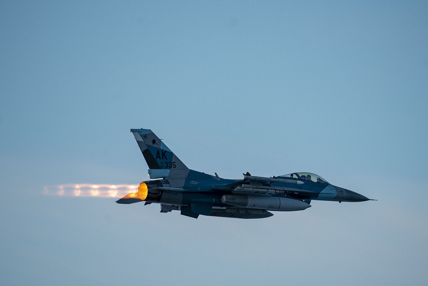 An F-16D Fighting Falcon part of the 310th Fighter Squadron takes off, Dec. 15, 2020, at Luke Air Force Base, Arizona. Luke AFB graduates more than 188 F-16 fighter pilots annually. There are four F-35A Lightning II fighter squadrons and four F-16 fighter squadrons that directly support the base?s mission of training the world?s greatest fighter pilots. (U.S. Air Force photo by Airman 1st Class Brooke Moeder)