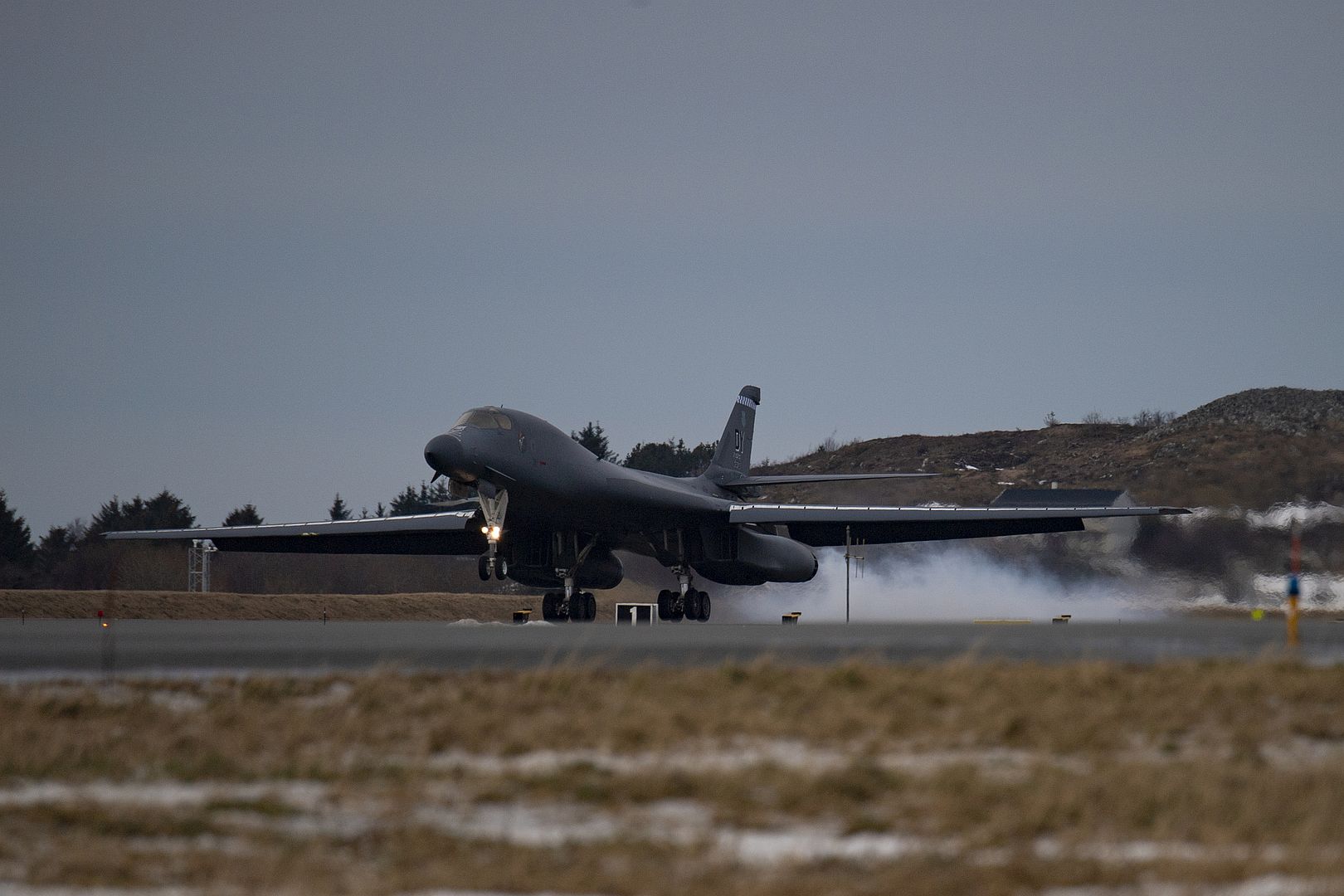 A B-1B Lancer assigned to the 9th Expeditionary Bomb Squadron arrives at Ørland Air Force Station, Norway, in support of a Bomber Task Force deployment, Feb. 22, 2021. The 9th EBS is the first bomber squadron to deploy to and operate out of Norway. Norway is a key U.S. ally in the Arctic and North Atlantic region, and a strong partner in fostering regional security and prosperity. (U.S. Air Force photo by Airman 1st Class Colin Hollowell)