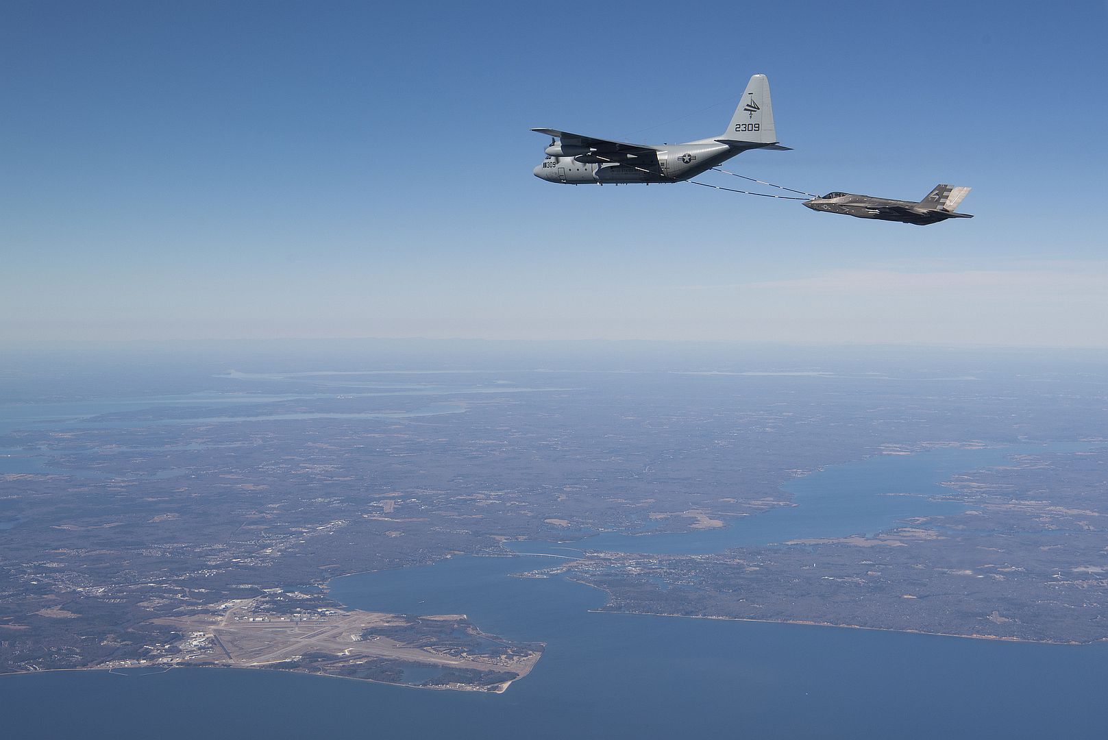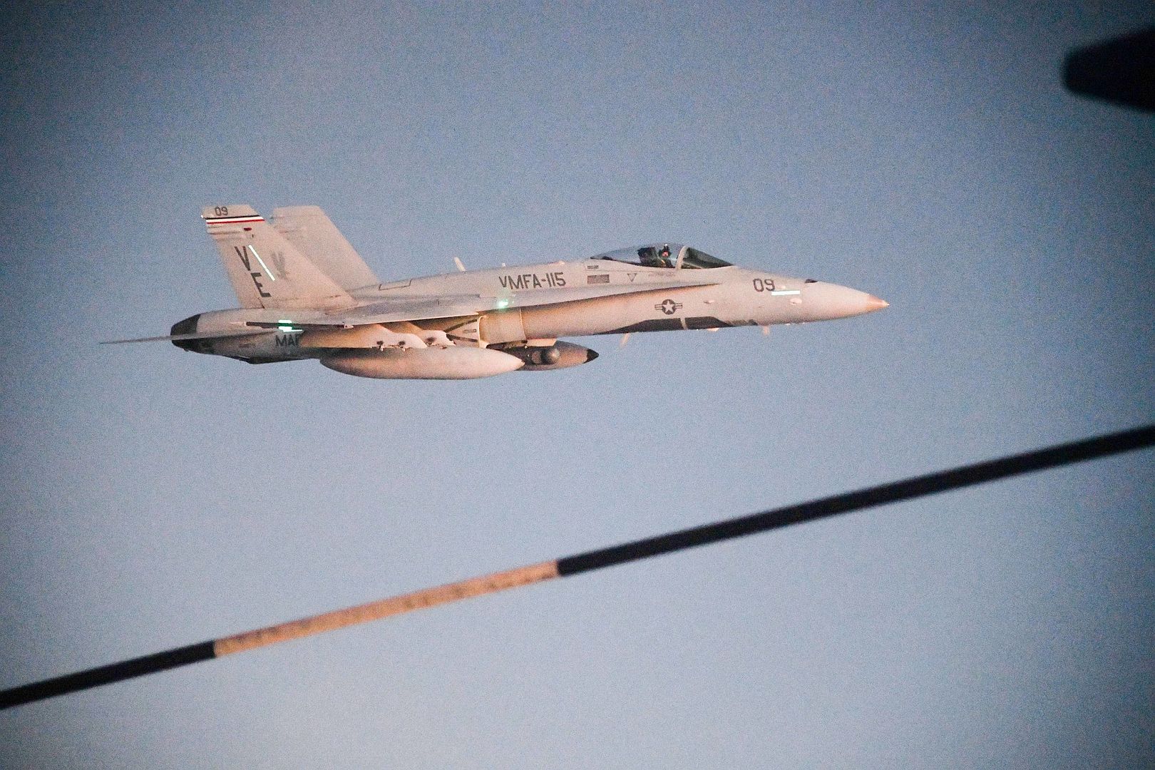 Main AdminF/A-18 Hornet fighter aircraft connect with an HC-130J Combat King II for nighttime high-speed air-to-air refuel Feb. 22, 2021. The completion of this milestone supports joint-service interoperability and enhances the success of military operations worldwide. This HC-130J capability increases available assets to conduct operations jointly where other aircraft may not be available, allowing the mission to continue unhindered. (U.S. Air Force photo by Master Sgt. Kelly Goonan)