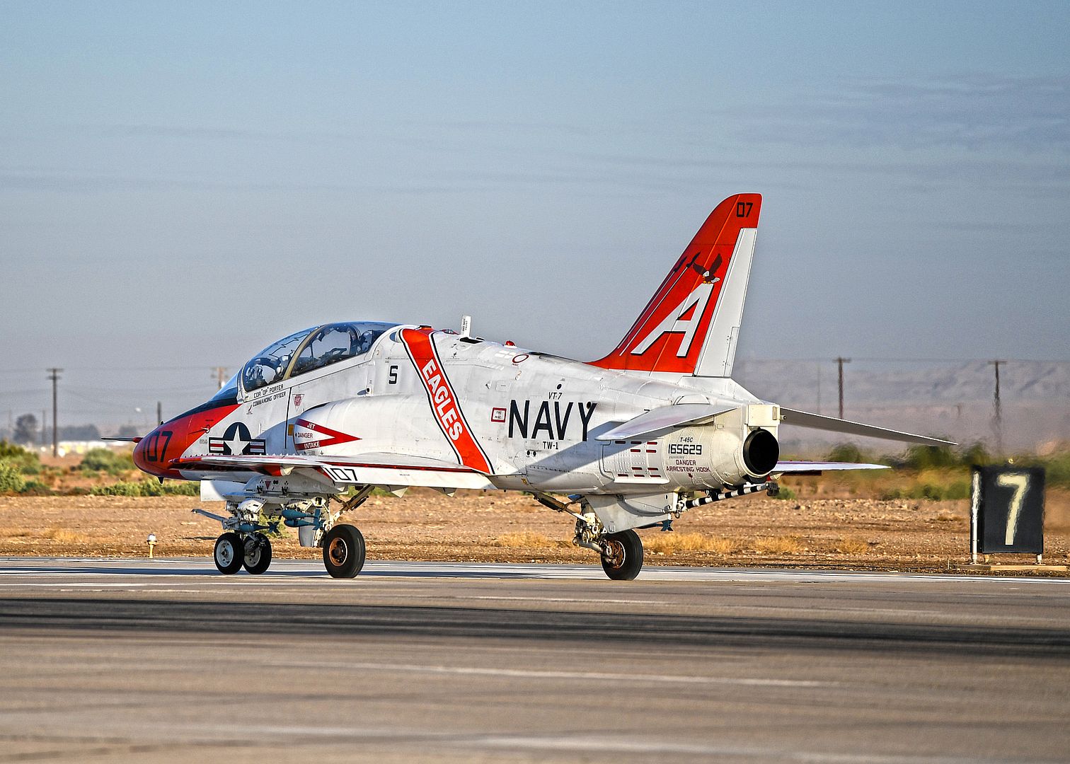 El Centro, Calif. (March 3, 2021) – Chief of Naval Air Training (CNATRA) conduct strike pilot training with Navy and Marine Corps student naval aviators detached from Training Air Wing-1, Meridian, Ms., operating the T-45C Goshawk jet aircraft onboard Naval Air Facility (NAF) El Centro, Calif. March 3, 2021. NAF El Centro supports combat training and readiness of the Warfighter. This includes air operations support to operational fleet and training squadrons as well as squadrons from other services (USMC, USA, USAF) and Allies. (U.S. Navy photos by Mass Communication Specialist 3rd Class Drew Verbis/Released)