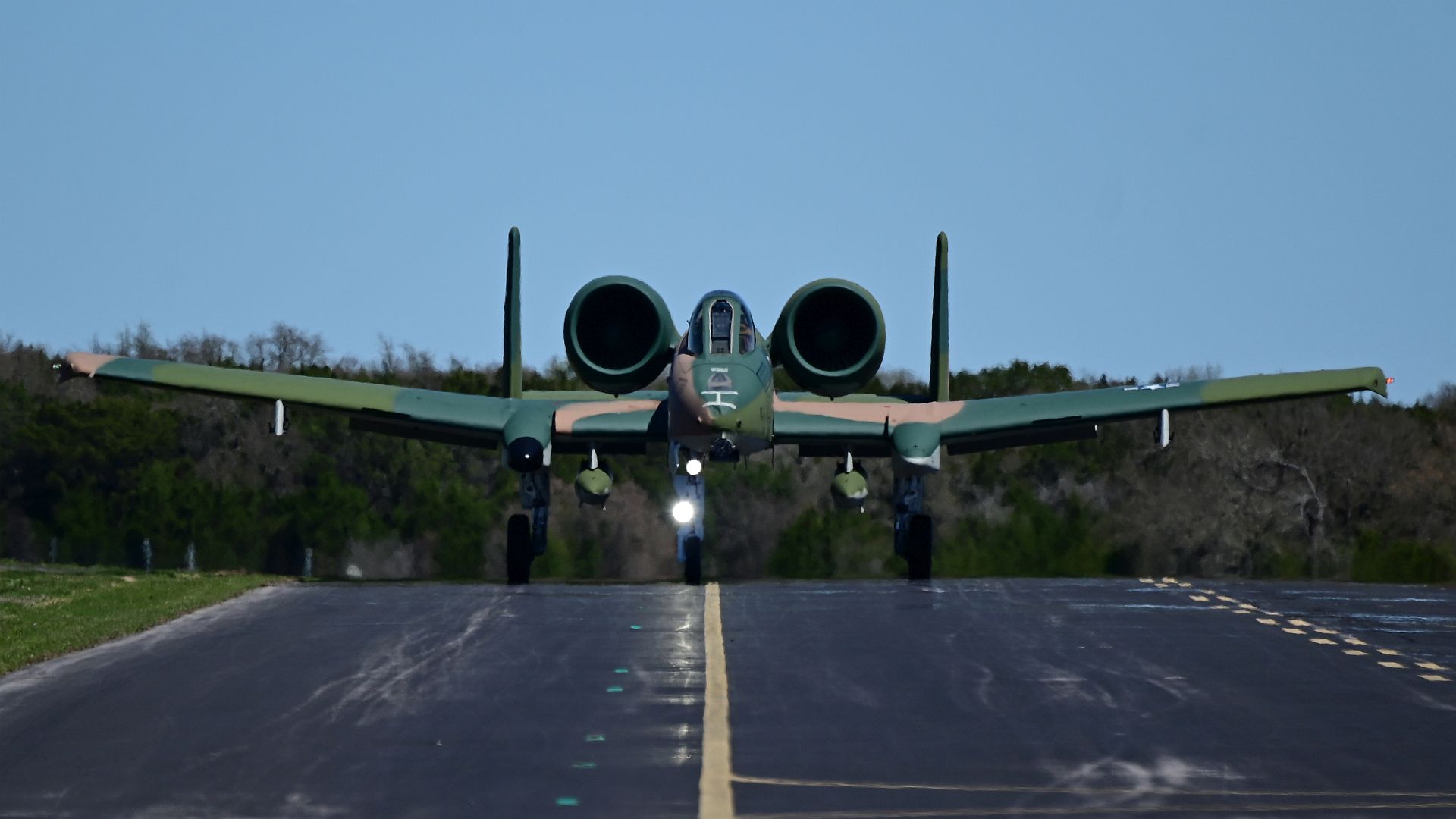 U.S. Air Force Capt. Haden “Gator” Fullam, A-10 Thunderbolt II Demonstration Team commander, lands on a flightline at Burnet, Texas, March 18, 2021. Thunderbolt IIs are the first Air Force aircraft specially designed for close air support of ground forces. (U.S. Air Force photo by Staff Sgt. Sergio A. Gamboa)