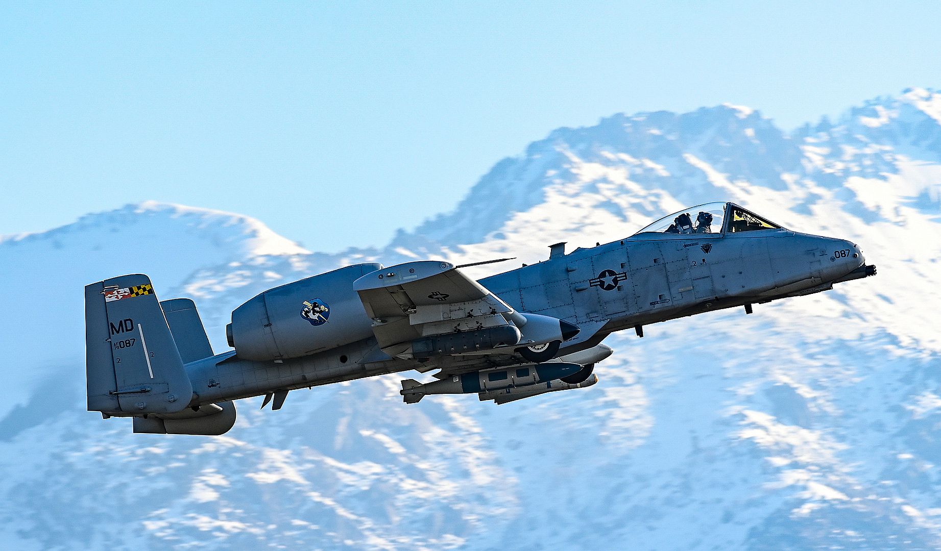 An A-10 Thunderbolt II from the 104th Fighter Squadron, part of the Maryland Air National Guard, takes off from Hill Air Force Base, Utah, March 17, 2021. The 104th FS are visiting Hill March 9-18 to participate in a Weapons System Evaluation Program known as Combat Hammer. (U.S. Air Force photo by Cynthia Griggs)