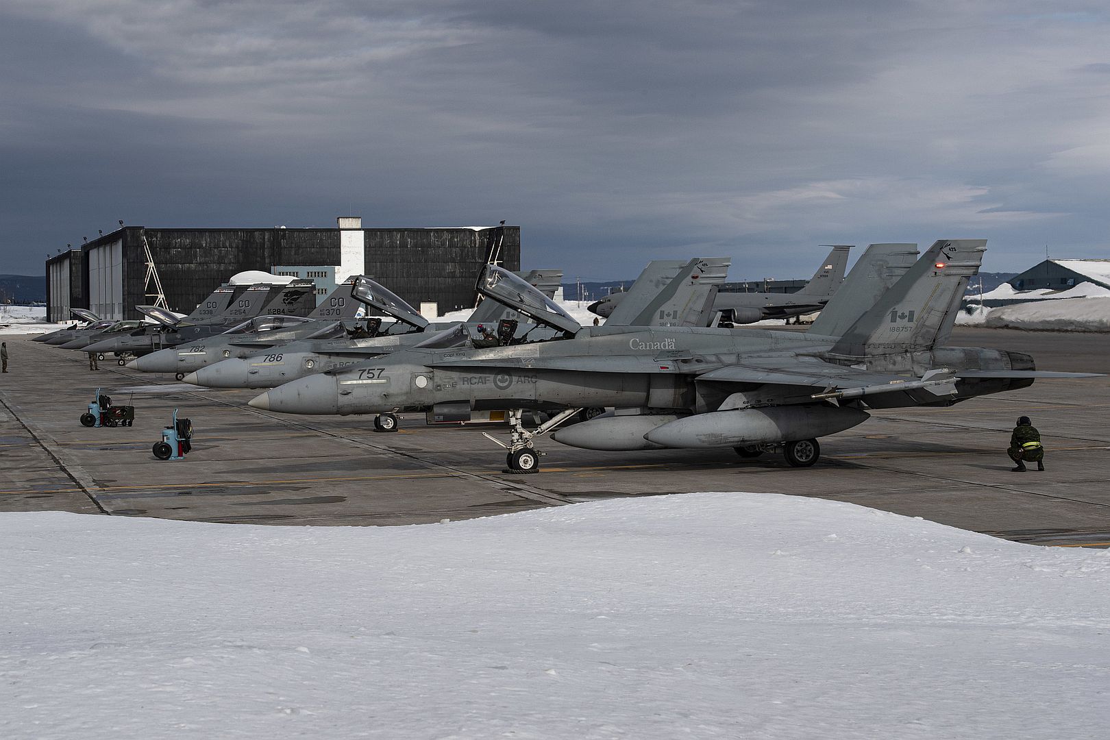 RCAF CF-18s from 3 Wing Bagotville arrived at Thule AB, Greenland, during North American Aerospace Defense Command’s Arctic air defense exercise, AMALGAM DART, March 20, 2021. The exercise will run from March 20-26 and range from the Beaufort Sea to Thule, Greenland and extend south down the Eastern Atlantic to the U.S. coast of Maine. Amalgam Dart 21-2 provides NORAD the opportunity to hone homeland defense skills as Canadian, U.S., and NATO forces operate together in the Arctic. A bi-national Canadian and American command, NORAD employs a network of space-based, aerial and ground-based sensors, air-to-air refueling tankers, and fighter aircraft, controlled by a sophisticated command and control network to deter, detect and defend against aerial threats that originate outside or within North American airspace. NATO E-3 Early Warning Aircraft, Royal Canadian Air Force CF-18 fighter aircraft, CP-140 long-range patrol aircraft, CC-130 Search and Rescue and tactical airlift aircraft, CC-150T air refueled, and CH-149 Cormorant Search and Rescue helicopters; as well as U.S. Air Force F-16 fighter aircraft, KC-10 Extender refueler, KC-46 Pegasus, KC-135 Stratotanker, as well as C-130 and C-17 transport aircraft will participate in the exercise. (Photo credit: (CAN) Master Corporal Gary Clavé)