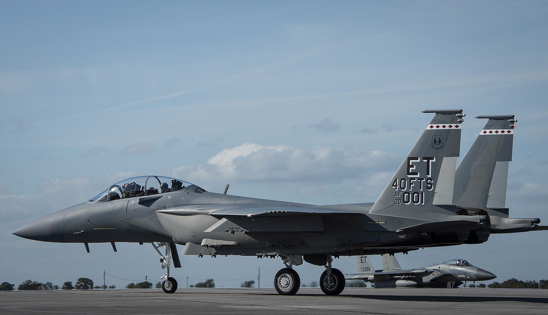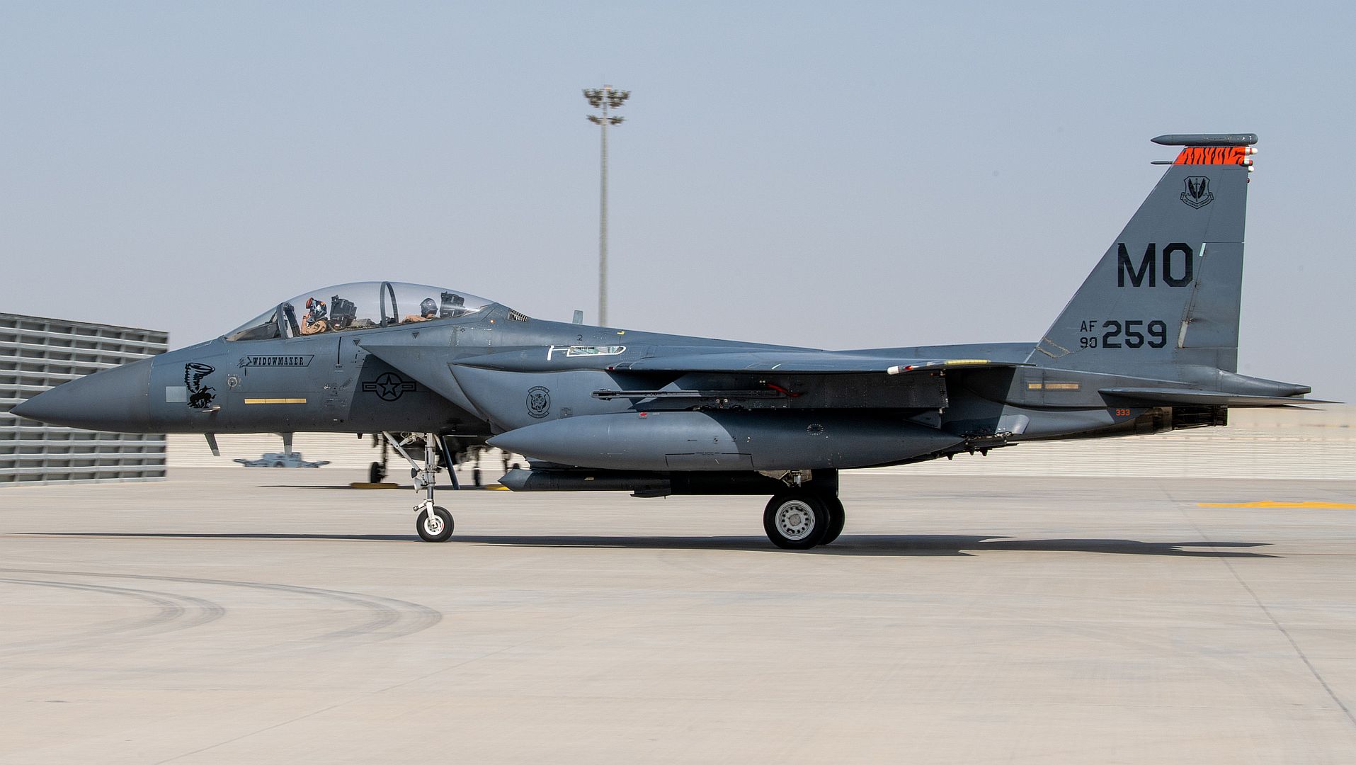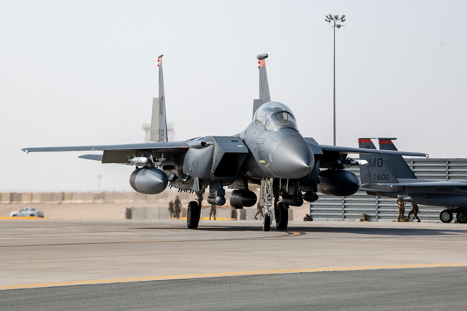 An F-15E Strike Eagle assigned to the 332nd Air Expeditionary Wing taxis during an integrated combat turn training event at Al Udeid Air Base, Qatar, March 3, 2021. ICTs allow for a rapid redeployment of forces to ensure protection of U.S. Central Command’s area of responsibility. (U.S. Air Force photos by Staff Sgt. Greg Erwin)