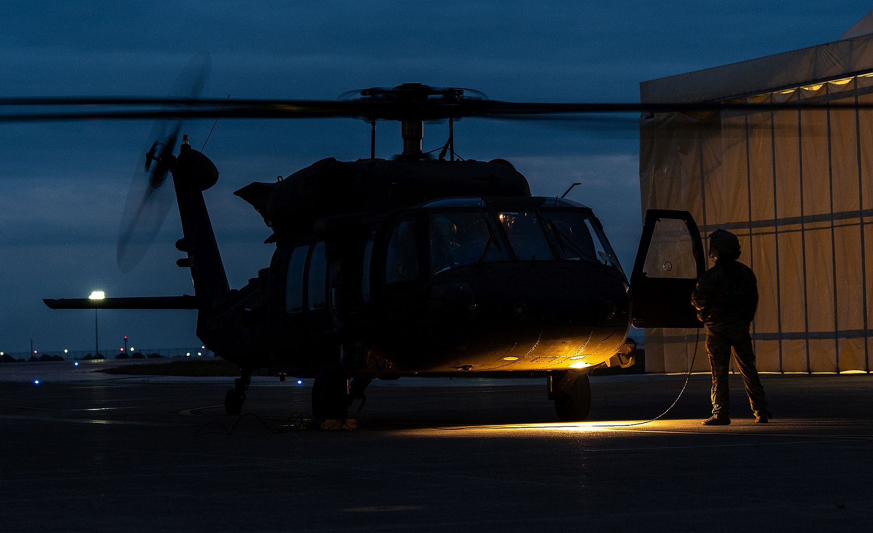 A U.S. Army soldier with Charlie Company, 5th Battalion, 101st Combat Aviation Brigade “Phantoms” performs flight checks on a UH-60 Black Hawk helicopter before takeoff, March 15, 2021, at Incirlik Air Base, Turkey. The Phantoms provide Incirlik AB with rotary wing capability giving the 39th ABW the ability to react quickly in the area of operations. (U.S. Air Force photo by Staff Sgt. Alexander Cook)