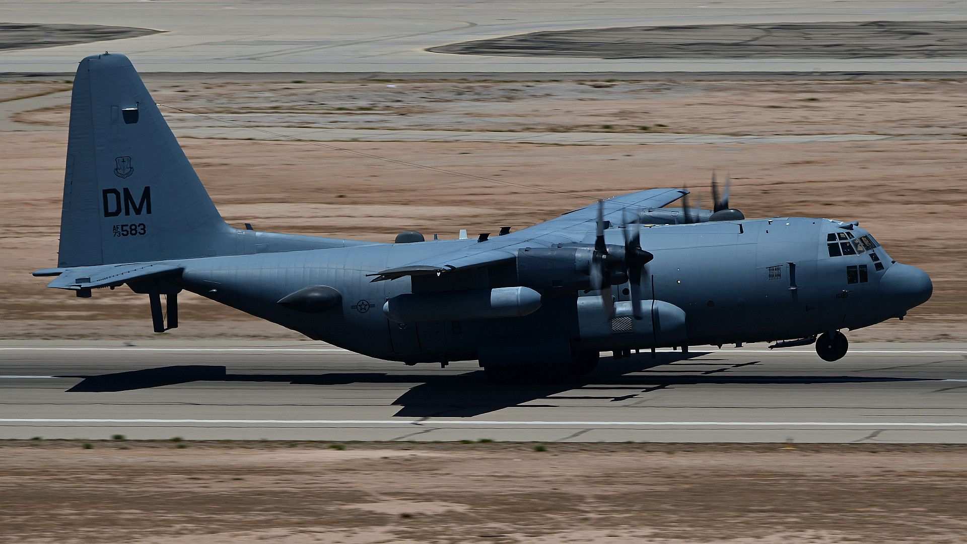 A U.S. Air Force EC-130H Compass Call takes off from the flight line during a show-of-force readiness exercise at Davis-Monthan Air Force Base, Arizona, June 28, 2021. The 55th Electronic Combat Group executed this exercise using its seven EC-130H Compass Calls that taxied, took off and performed simulated combat sorties. (U.S. Air Force photo by Tech. Sgt. Sergio A. Gamboa)