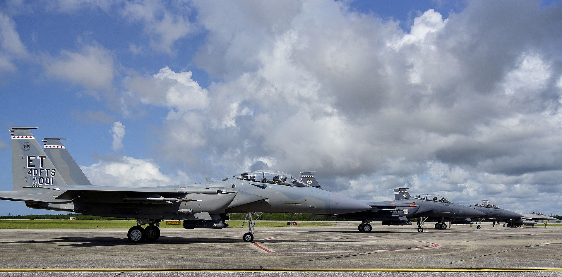 Approximately ten F-15E Strike Eagles from the 389th Fighter Squadron, 366th Fighter Wing at Mountain Home Air Force Base, Idaho; approximately 25 F-22 Raptors from the 525th Fighter Squadron, 3rd Wing at Joint Base Elmendorf-Richardson, Alaska, and the 199th Fighter Squadron, 154th Wing, Hawaii Air National Guard at Joint Base Pearl Harbor Hickam, Hawaii; and two C-130J Hercules from the 374th Airlift Wing from Yokota Air Base, Japan will conduct combat dispersal operations in Guam and Tinian.