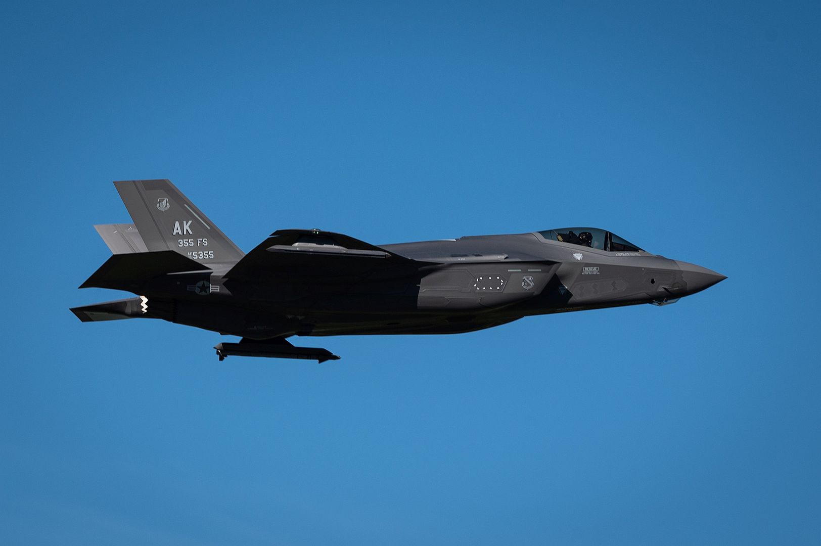 An F-35A Lightning II assigned to the 355th Fighter Squadron flies over Eielson Air Force Base, Alaska, July 1, 2021. As one of the 354th Fighter Wing’s F-35A units, the 355th FS bolsters the 354th wing’s transition to a combat-coded mission, doubling U.S. Pacific Air Forces’ F-35A combat capability. (U.S. Air Force photo by Airman 1st Class Jose Miguel T. Tamondong)