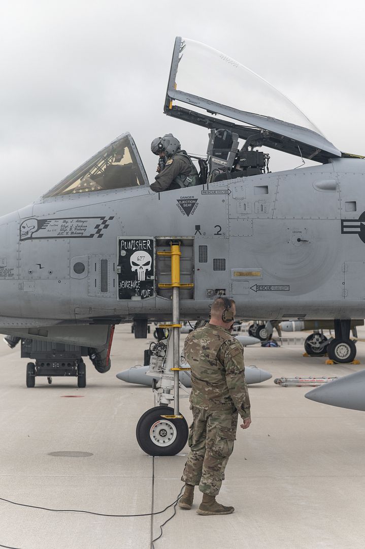 A pilot from the 107th Fighter Squadron takes off in an A-10 Thunderbolt II from Selfridge Air National Guard Base for a training mission in Northern Michigan June 8 2022. The A-10 Thunderbolt II is the first Air Force aircraft specially designed for close air support of ground forces. They are effective and survivable twin-engine jet aircraft that can carry a wide variety of munitions that can be used against all ground targets, including tanks and other armored vehicles.