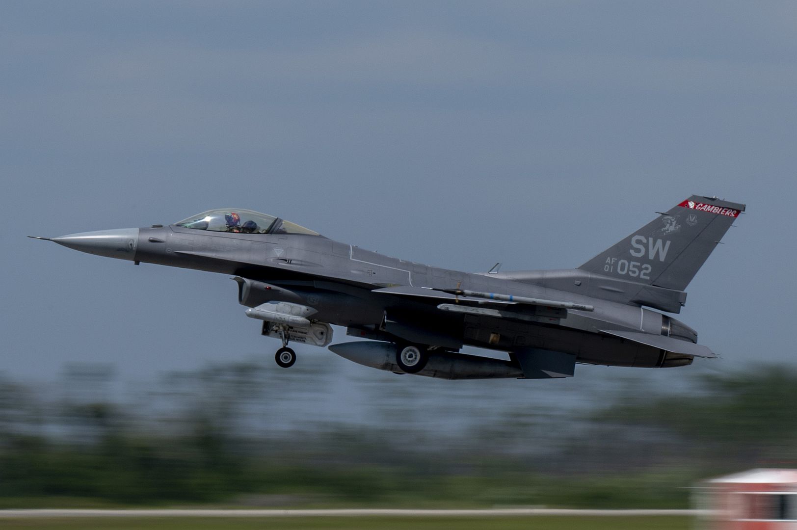 A U.S. Air Force F-16C Fighting Falcon assigned to the 77th Fighter Squadron, Shaw Air Force Base, South Carolina, takes off during Weapons System Evaluation Program-East 22.08 at Tyndall Air Force Base, Florida, May 17, 2022. WSEP is a formal, two-week evaluation exercise designed to test a squadron’s capabilities to conduct live-fire weapons systems during air-to-air combat training missions. (U.S. Air Force photo by Tech. Sgt. Betty R. Chevalier)