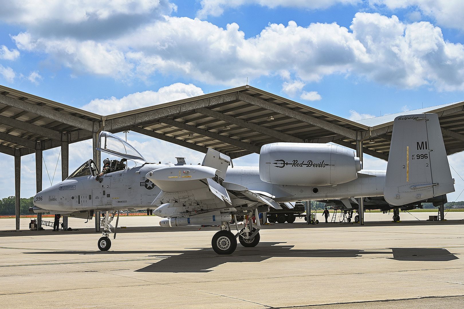 A heritage A-10C Thunderbolt II aircraft with a commemorative paint scheme, assigned to the 163rd Fighter Squadron, takes part in multi-aircraft generation maneuvers July 10, 2022, at the Fort Wayne Air National Guard base, Fort Wayne, Indiana. Airmen from the 122nd Fighter Wing performed military duties during a large-scale readiness exercise that tested their abilities to respond to real-world threats. (U.S. Air National Guard photo by Staff Sgt. Rita Jimenez)