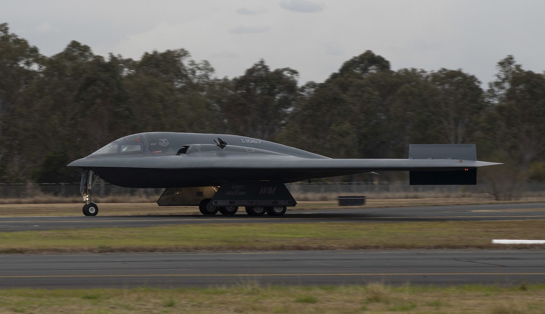 A U.S. Air Force B-2 Spirit, assigned to 509th Bomb Wing, Whiteman Air Force Base, Missouri, lands at Royal Australian Air Force Base Amberley, Australia, in support of a Bomber Task Force training exercise, July 12, 2022. The BTF will employ the B-2 to conduct joint training and strategic deterrence missions alongside Allies and partners in support of U.S. Indo-Pacific Command’s commitment to a free and open Indo-Pacific. (U.S. Air Force photo by Tech. Sgt. Dylan Nuckolls)