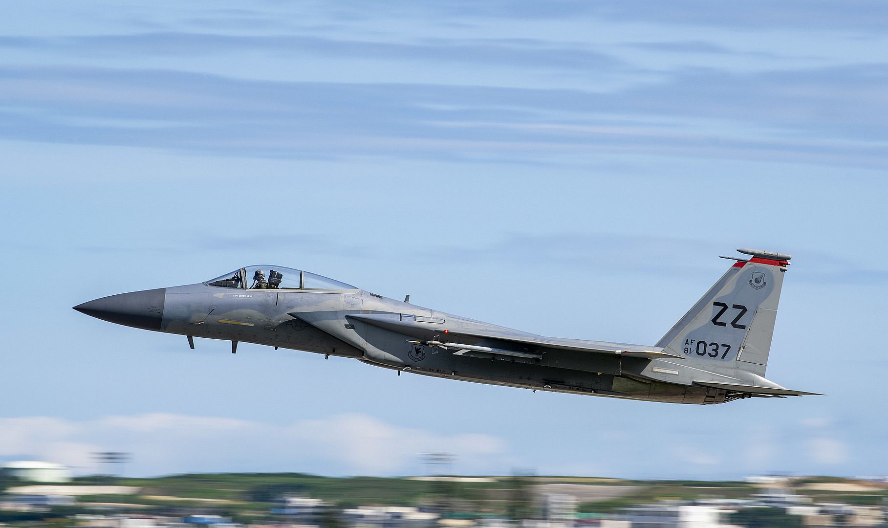 An F-15C Eagle assigned to the 44th Fighter Squadron takes off during a training mission at Kadena Air Base, Japan, July 12, 2022. Kadena Air Base conducts operations in support of the defense of Japan, as well as U.S. efforts to preserve a free-and-open Indo-Pacific. (U.S. Air Force photo by Airman 1st Class Moses Taylor)