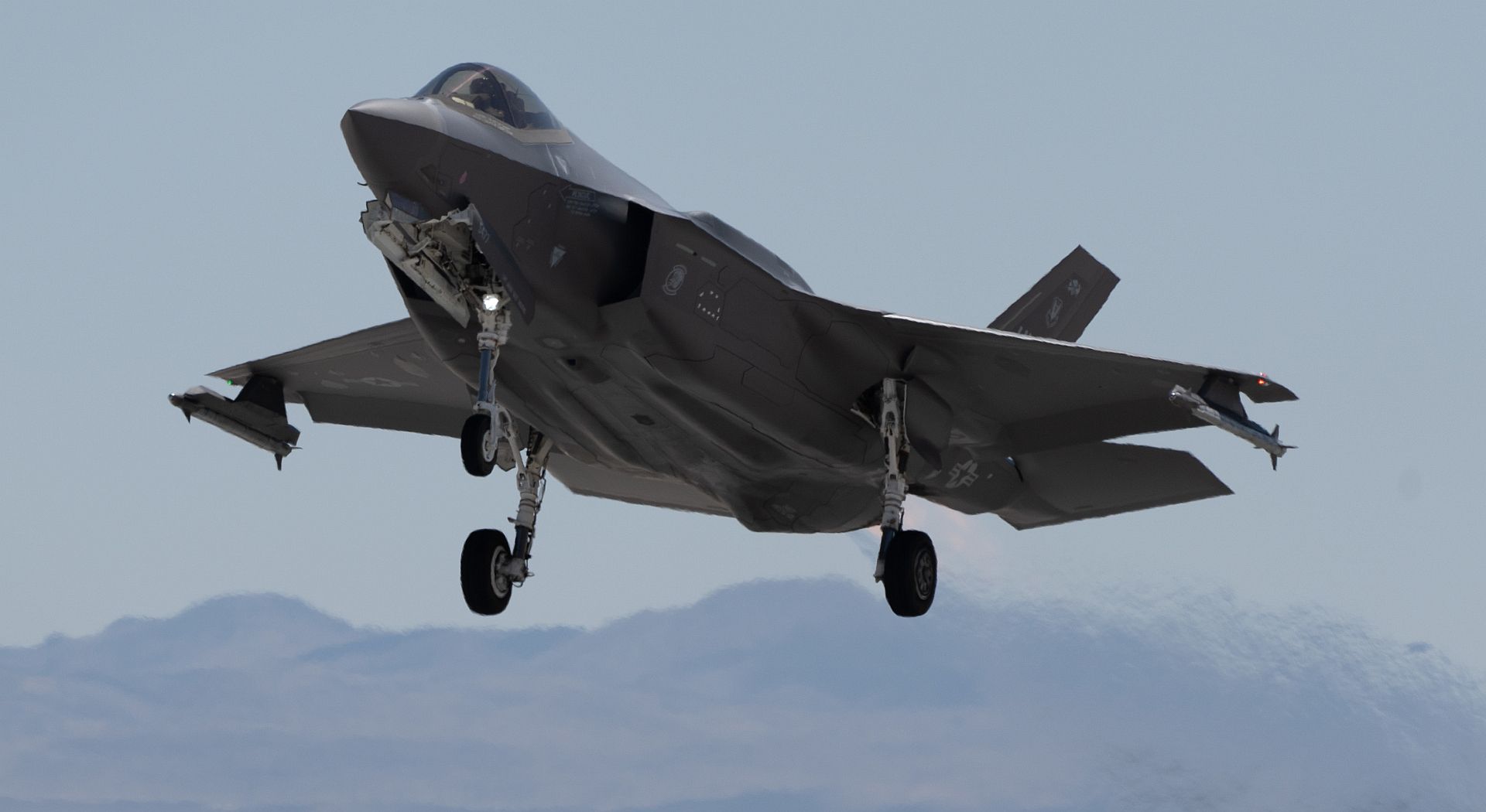 An F-35A Lightning II assigned to the 4th Fighter Squadron, Hill Air Force Base, Utah, takes off during Red Flag-Nellis 22-3 at Nellis Air Force Base, Nevada, July 11, 2022. RF-N 22-3 provides realistic combat training that saves lives while increasing combat effectiveness. (U.S. Air Force photo by Airman 1st Class Josey Blades)