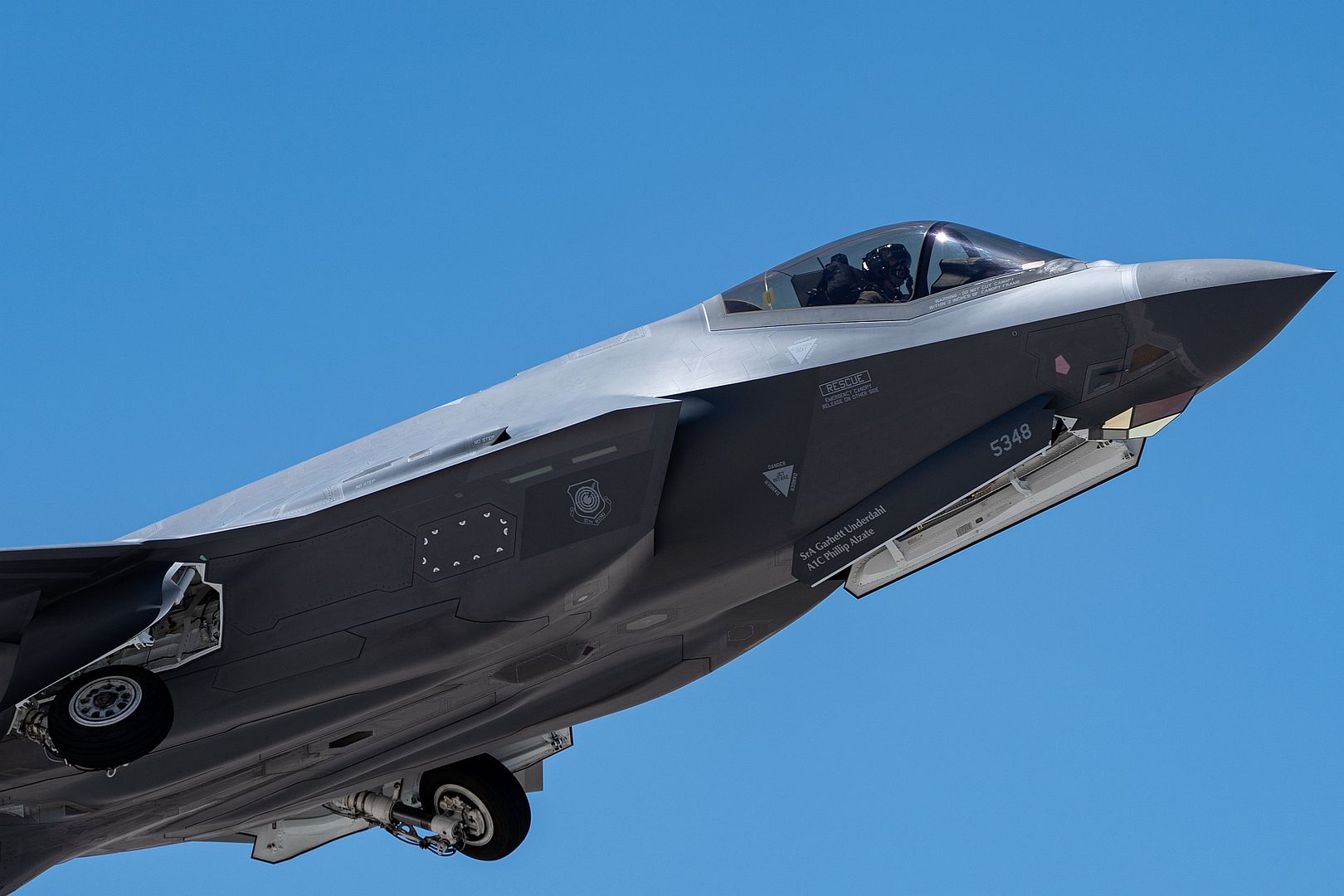 An F-35A Lightning II, assigned to the U.S. Air Force Weapons School, takes off at Nellis Air Force Base, Nevada, July 11, 2022. The F-35A is providing next-generation stealth capabilities as aggressors with enhanced situational awareness to train and reduce vulnerability for the United States and joint forces participating in this exercise iteration. (U.S. Air Force photo by Airman 1st Class Josey Blades)
