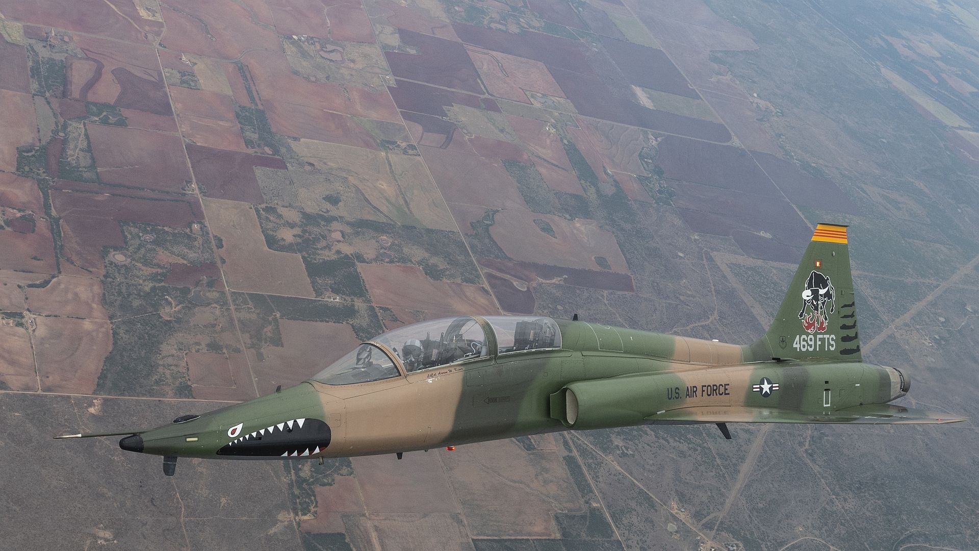 U.S. Air Force Maj. Logan Riordan, an instructor pilot assigned to the 97th Flying Training Squadron, operates a U.S. Air Force T-38C Talon aircraft above Wichita Falls, Texas, July 21, 2022. The 97th FTS, a reserve association of the 80th Flying Training Wing, aids in instructing students in the Euro-NATO Joint Jet Pilot Training Program. The ENJJPT program, conducted by the 80th FTW, is the world's only multi-nationally manned and managed flying training program chartered to produce combat pilots for NATO. (U.S Air Force photos by Staff Sgt. Joseph Pick)