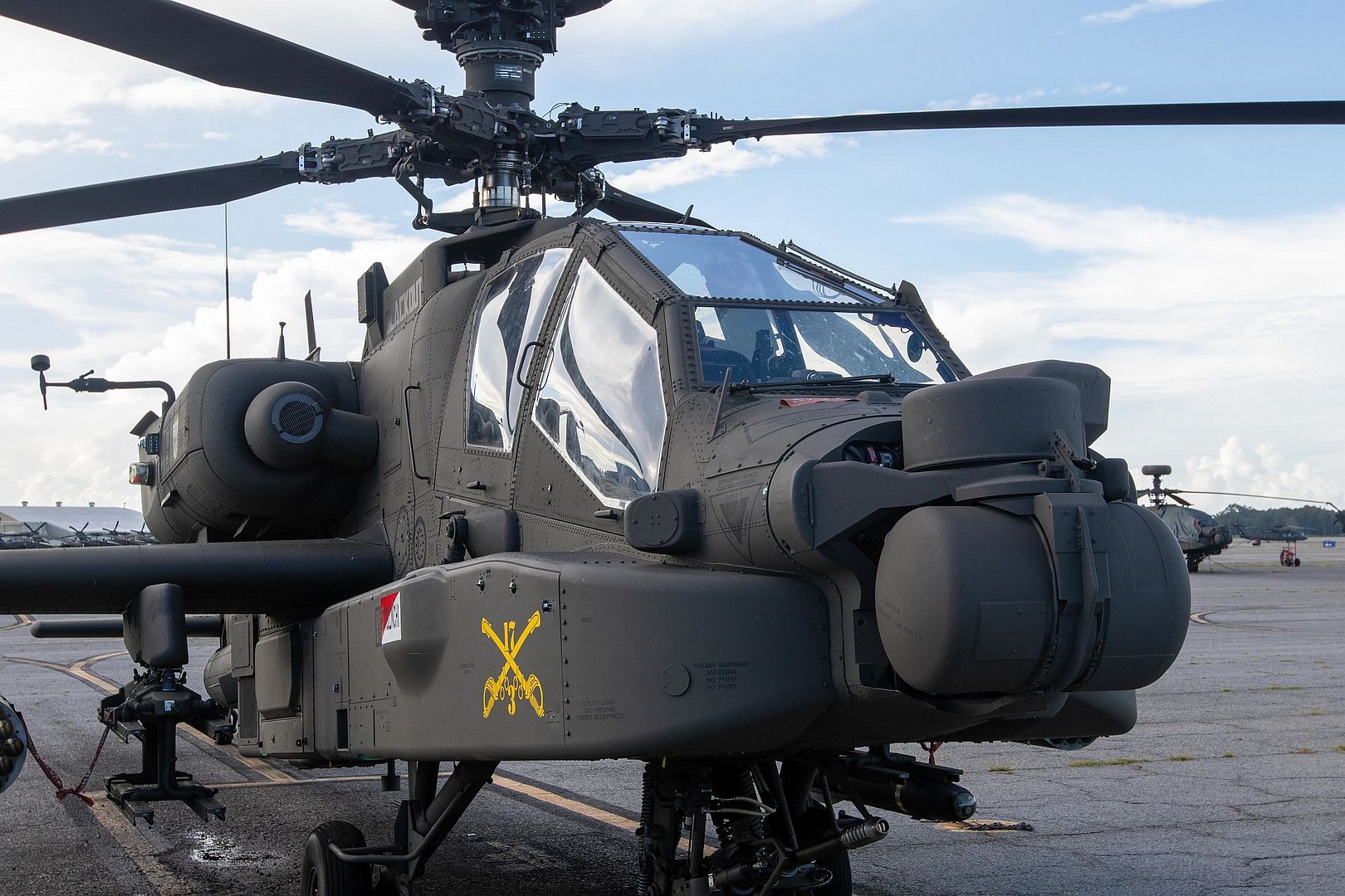 An AH-64 Apache assigned to 3rd Squadron, 17th Cavalry Regiment, 3rd Combat Aviation Brigade, 3rd Infantry Division sits on the flightline at Hunter Army Airfield, Georgia, August 8, 2022. (U.S. Army photo by Spc. Caitlin Wilkins, 3rd Combat Aviation Brigade)