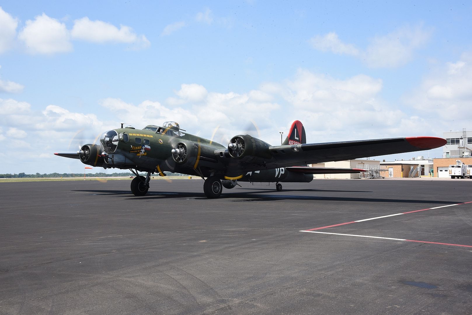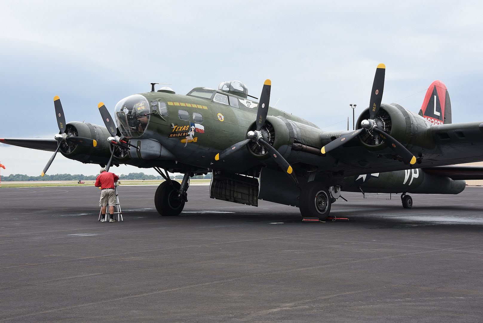 Crew members from the Commemorative Air Force prepare a B-17 Flying Fortress for departure from the Sioux City, Iowa Airport on July 25, 2022 where the aircraft had been on display over the weekend. The aircraft is one of only 5 remaining active Flying Fortress aircraft remaining. U.S. Air National Guard photos Senior Master Sgt. Vincent De Groot .