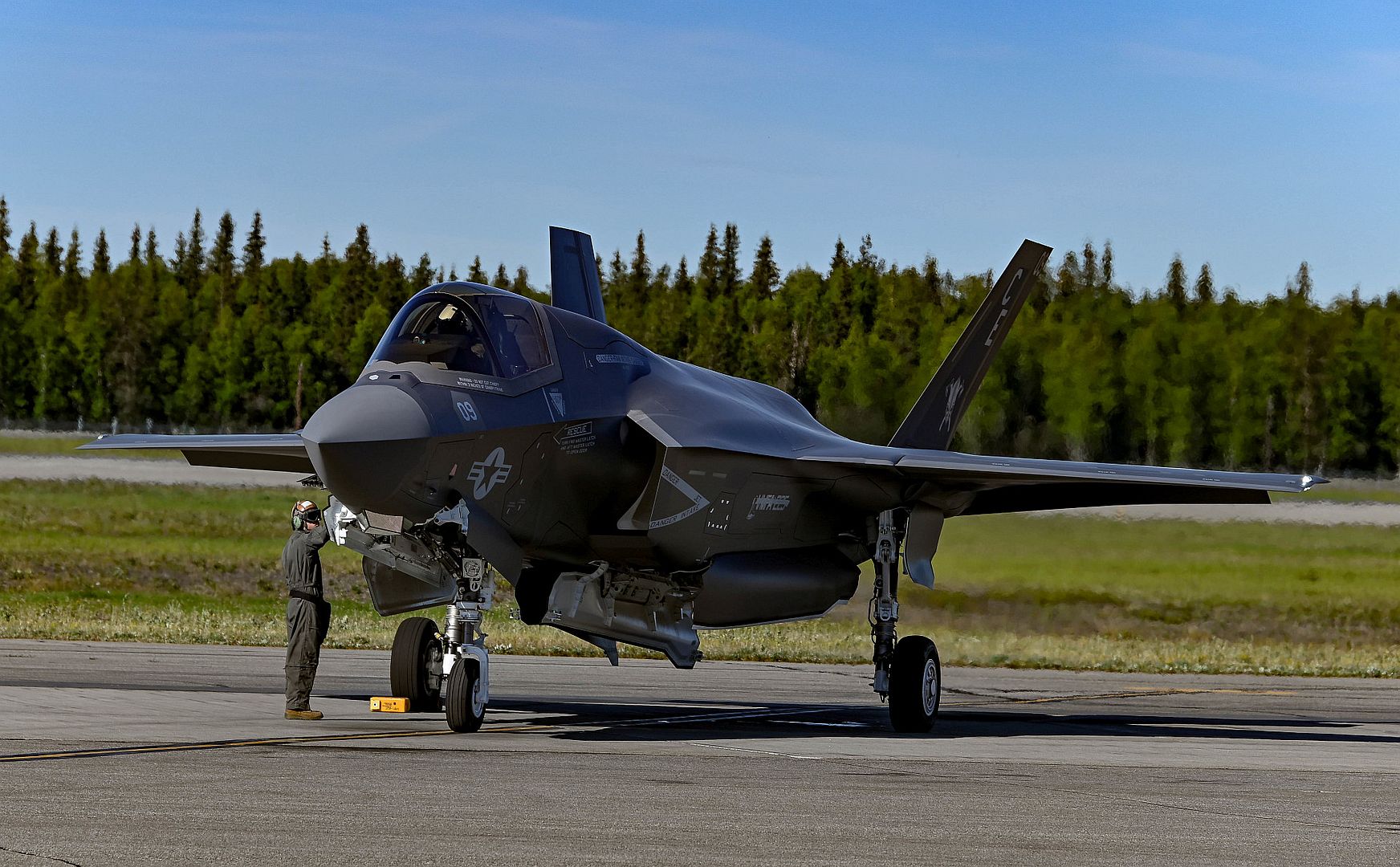 Main AdminU.S. Marine Corps Lance Cpl. Gunner Gatewood, Marine Fighter Attack Squadron 225 powerline mechanic, performs a preflight check on an F-35B Lightning II during RED FLAG-Alaska 22-3 at Eielson Air Force Base, Alaska, Aug. 3, 2022. RF-A is a premier training event for joint units to bolster interoperability while simultaneously honing combat skills to provide joint forces the opportunity to exercise combat capabilities through shared tactics, techniques, and procedures under a simulated war-time environment. (U.S. Air Force photo by Senior Airman Shannon Braaten)