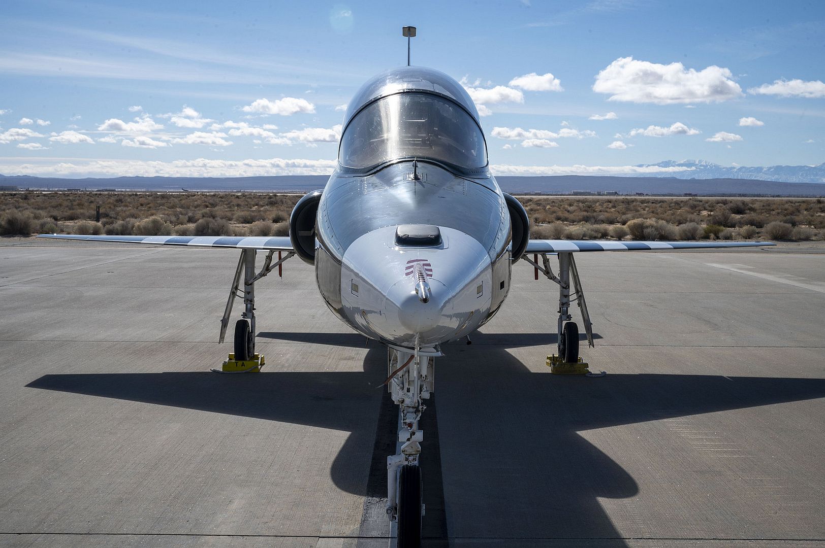 The "Have 5tarboy" team poses for a photo in front of a T-38C from Holloman. (Members from left to right: Capt. Steve "Nike" O'Briant, Project Pilot, Capt. Nathan "Loball" Raquet, Project Lead/Engineer, Joshua Morales, CEO of StarNav, Capt. Ajericho "Saint" Malia, Project Engineer, Squadron Leader Stephen "Tavo" Tavener Project Pilot (UK), Capt. Casey "Sandman" Slattery, Project Engineer, Maj. Matt "Doc" Daugherty, Project Pilot)