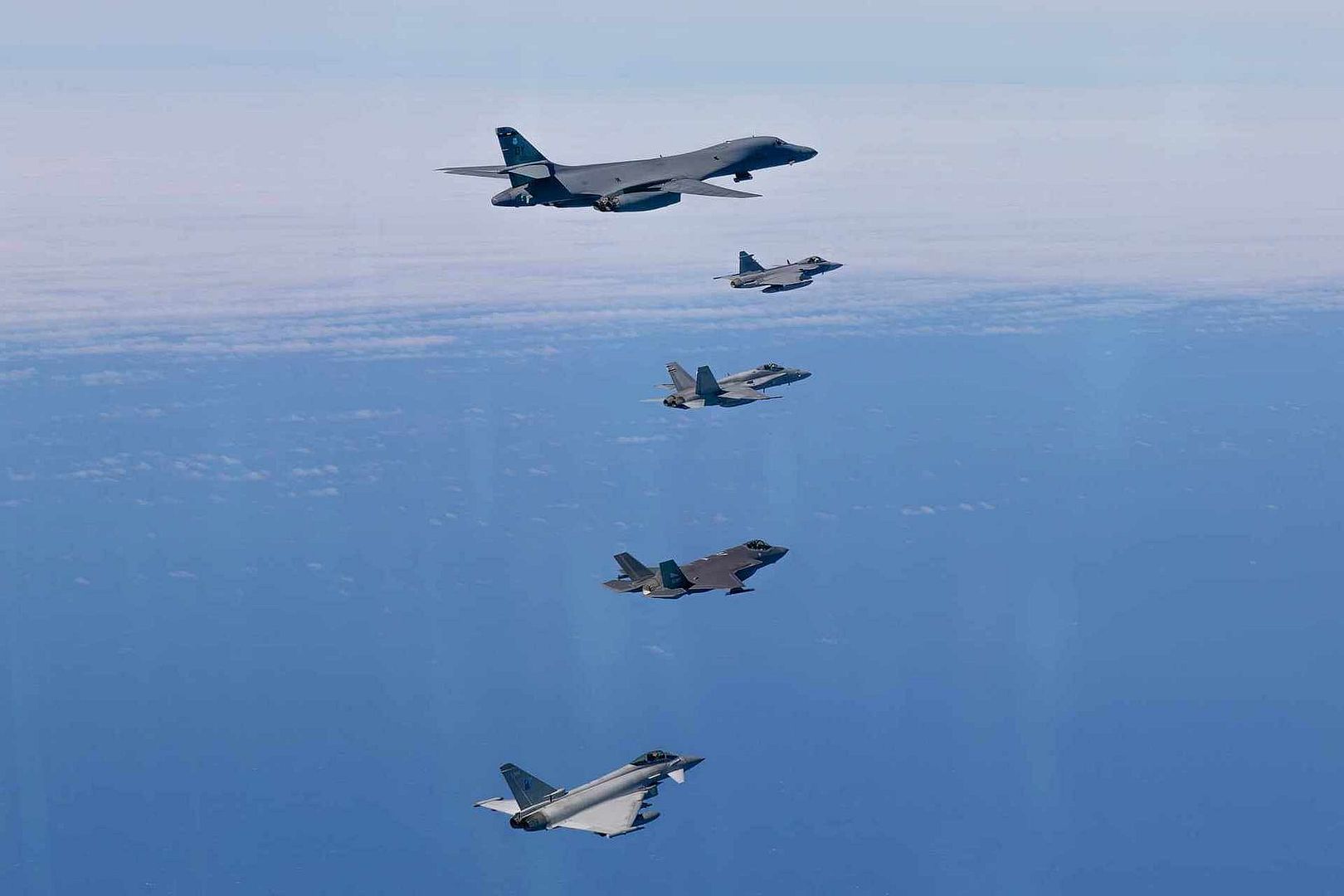 During their forward deployment to Norway, the Typhoons also carried out intercepts of B1 Lancers of the USAF Strategic Bomber Task Force (BTF) as part of Exercise Tower Guardian. The tactical intercepts of the BTF were carried out with Norwegian F35s, Swedish Gripens, Danish F16s and Finnish F18s.