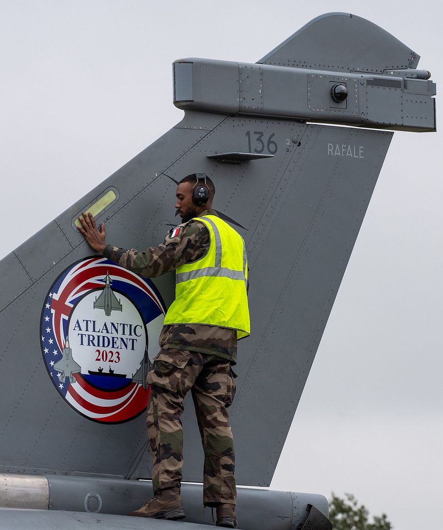 Atlantic Trident 23, continues in the UK. On Friday, November 3, a portion of the United States Air Force , Royal Air Force and Armée de l'Air et de l'Espace aircraft deployed by the Air and Space Force joined Leeming Air Base as part of an ACE deployment (Agil Combat Employment), the French equivalent of Morane concept.