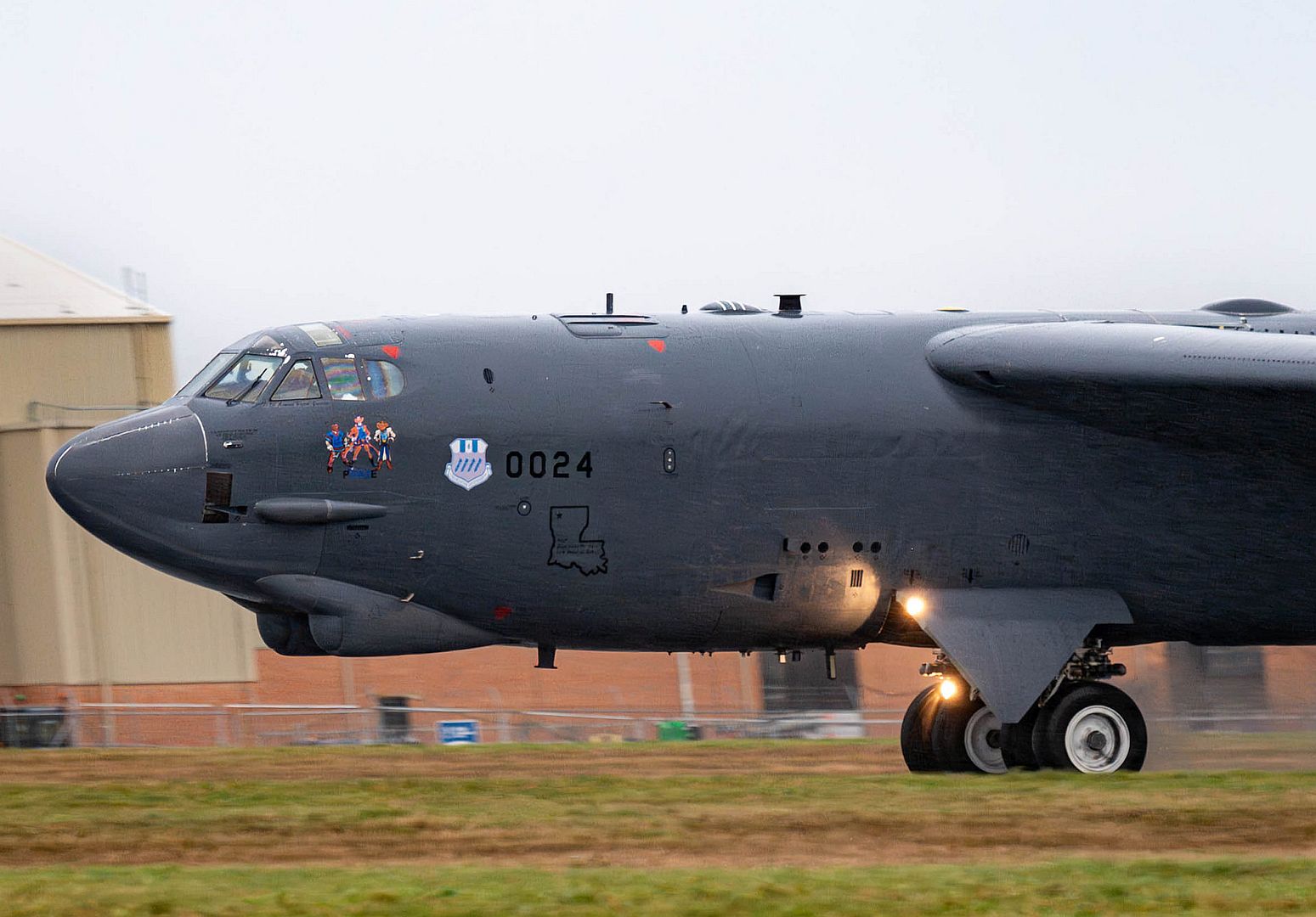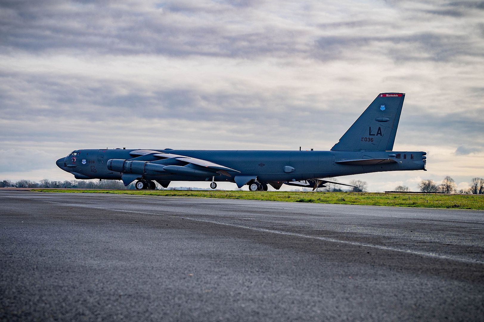 A B-52H Stratofortress assigned to the 20th Expeditionary Bomb Squadron taxis the runway at RAF Fairford, England, prior to taking off for Exercise Apex Buccaneer, Dec 3, 2024. During this Norwegian-led trilateral exercise in the High North, U.S., U.K., and Norwegian forces demonstrated seamless integration of advanced air, land, and naval operations, underscoring coalition readiness and interoperability. (U.S. Air Force Photo by Airman 1st Class Laiken King)