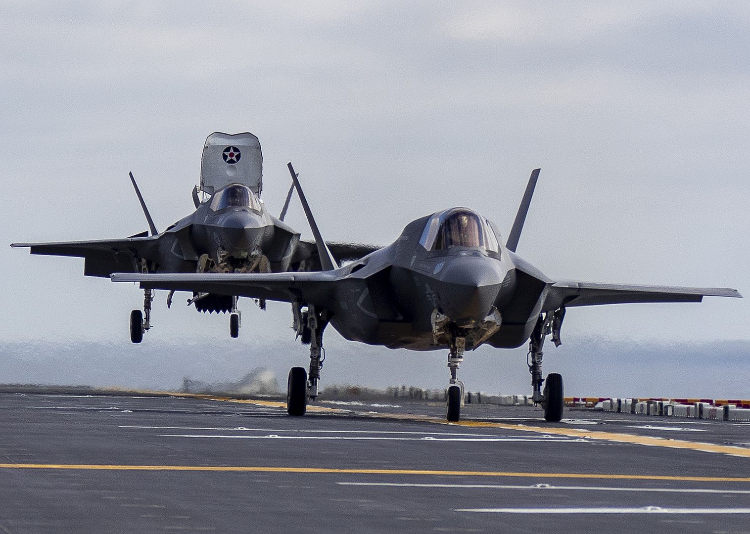 An F-35B Lightning II attached to Marine Fighter Attack Squadron (VMFA) 211, 3rd Marine Aircraft Wing, lands on the flight deck of the aboard amphibious assault carrier USS Tripoli (LHA 7), during Steel Knight 24, Dec. 4, 2024. Steel Knight is an annual exercise that takes place in multiple locations across the Southwest that allows I Marine Expeditionary Force to train as a full Marine Air-Ground Task Force and better integrate with joint and naval forces. Tripoli is underway in the U.S. 3rd Fleet area of operations participating in Steel Knight 24. (U.S. Navy photo by Mass Communication Specialist 2nd Class Austyn Riley)