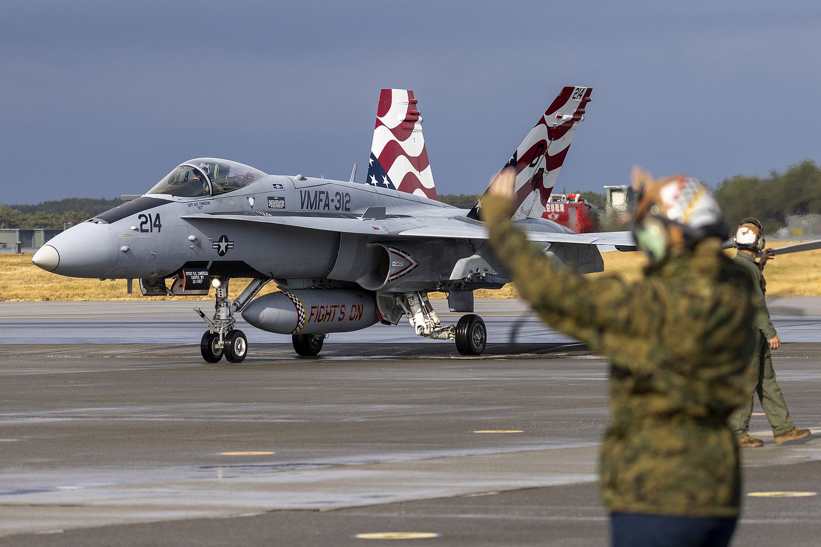 Main AdminA U.S. Marine Corps F/A-18D Hornet aircraft with Marine Fighter Attack Squadron (VMFA) 312, Marine Aircraft Group 12, 1st Marine Aircraft Wing prepares to take-off from Misawa Air Base, Japan, during an Aviation Training Relocation exercise, Dec. 3, 2024. VMFA-312 is temporarily augmenting MAG-12, 1st MAW under the Unit Deployment Program, which aims to provide squadrons stationed in the continental United States with experience training in the Indo-Pacific. One of the ATR program’s primary focuses is to enable U.S. and Japanese militaries to maintain readiness and enhance cohesion. (U.S. Marine Corps photo by Cpl. Chloe Johnson)