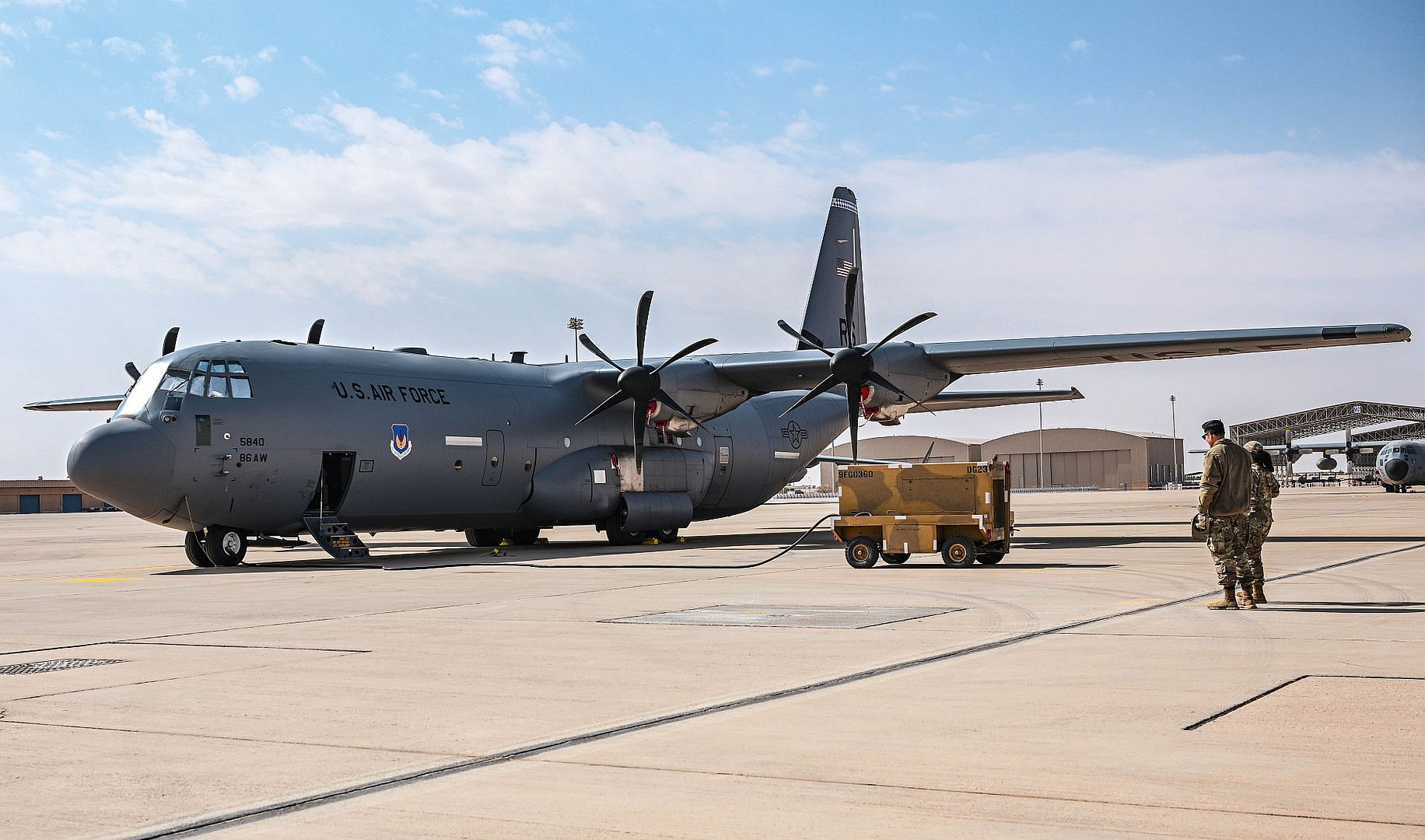 Main AdminA U.S. Air Force C-130J Super Hercules assigned to the 39th Expeditionary Airlift Squadron sits parked on the flightline during TUWAIQ-4, a multinational exercise within the U.S. Central Command area of responsibility, Dec. 2, 2024. The exercise advances regional air mobility, airlift, and airdrop between 10 regional and coalition partners. (Photo by Senior Airman Julian Atkins)