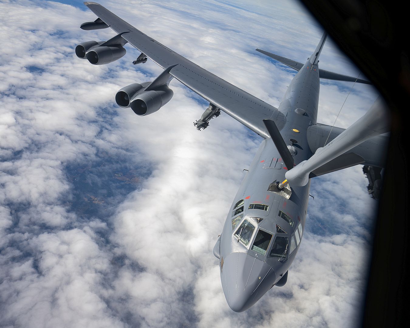 A B-52 Stratofortress assigned to the 2nd Bomb Wing, Barksdale Air Force Base, Louisiana, is refueled by a KC-135 Stratotanker assigned to the 6th Air Refueling Wing, MacDill AFB, Florida, for fuel over the southeastern United States, Dec. 4, 2024. The B-52 Stratofortress is a long-range, heavy bomber that can perform a variety of missions. As part of the Air Force Global Strike Command, the B-52 enables combat-ready forces to conduct strategic nuclear deterrence and global strike operations in support of combatant commanders. (U.S. Air Force photo by Staff Sgt. Lauren Cobin)