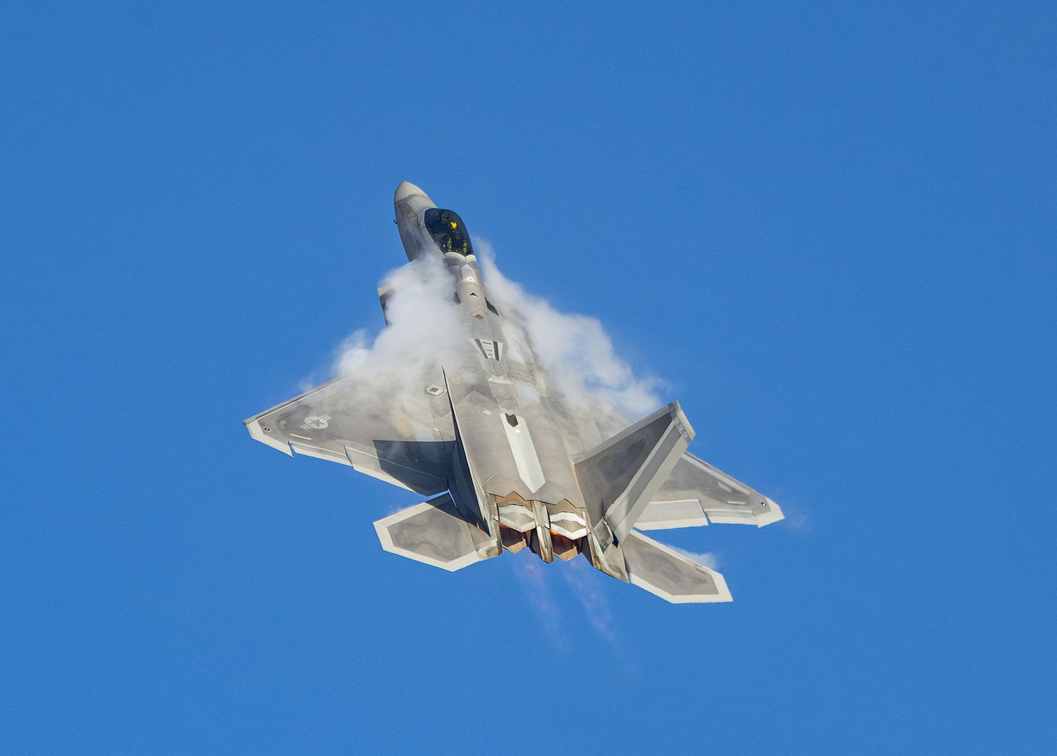 A U.S. Air Force F-22 Raptor, assigned to the F-22 Demonstration Team, executes precision aerial maneuvers during a practice airshow at Hill Air Force Base, Utah, Dec. 5, 2024. The practice session helps ensure the team maintains peak performance and readiness during the off-season. (U.S. Air Force photo by Senior Airman Nicholas Rupiper)